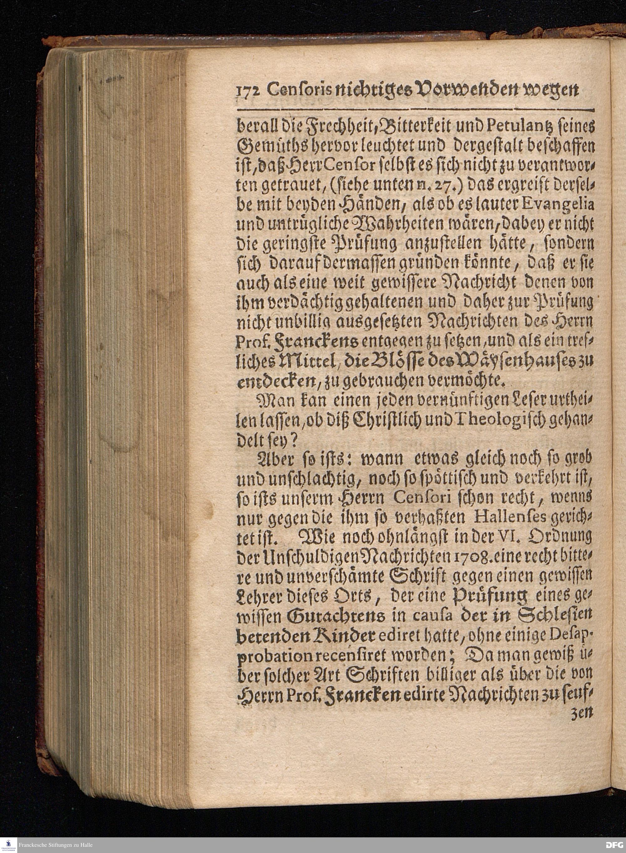 Segens=volle Fußstapfen des noch lebenden und waltenden liebrei=│chen und getreuen GOttes, Zur Beschämung des Unglaubens und Stärckung des Glaubens, entdecket durch eine wahrhafte und umständliche Nachricht von dem Wäysen=Hause und übrigen Anstalten zu Glaucha vor Halle; Welche Im Jahr 1701. zum Druck befördert, ietzo aber zum dritten mal ediret, und bis auf gegenwärtiges Jahr fortgesetzet von August Hermann Francken, S.Theol.Prof.und Past. HALLE, in Verlegung des Wäysen=Hauses, MDCCIX.