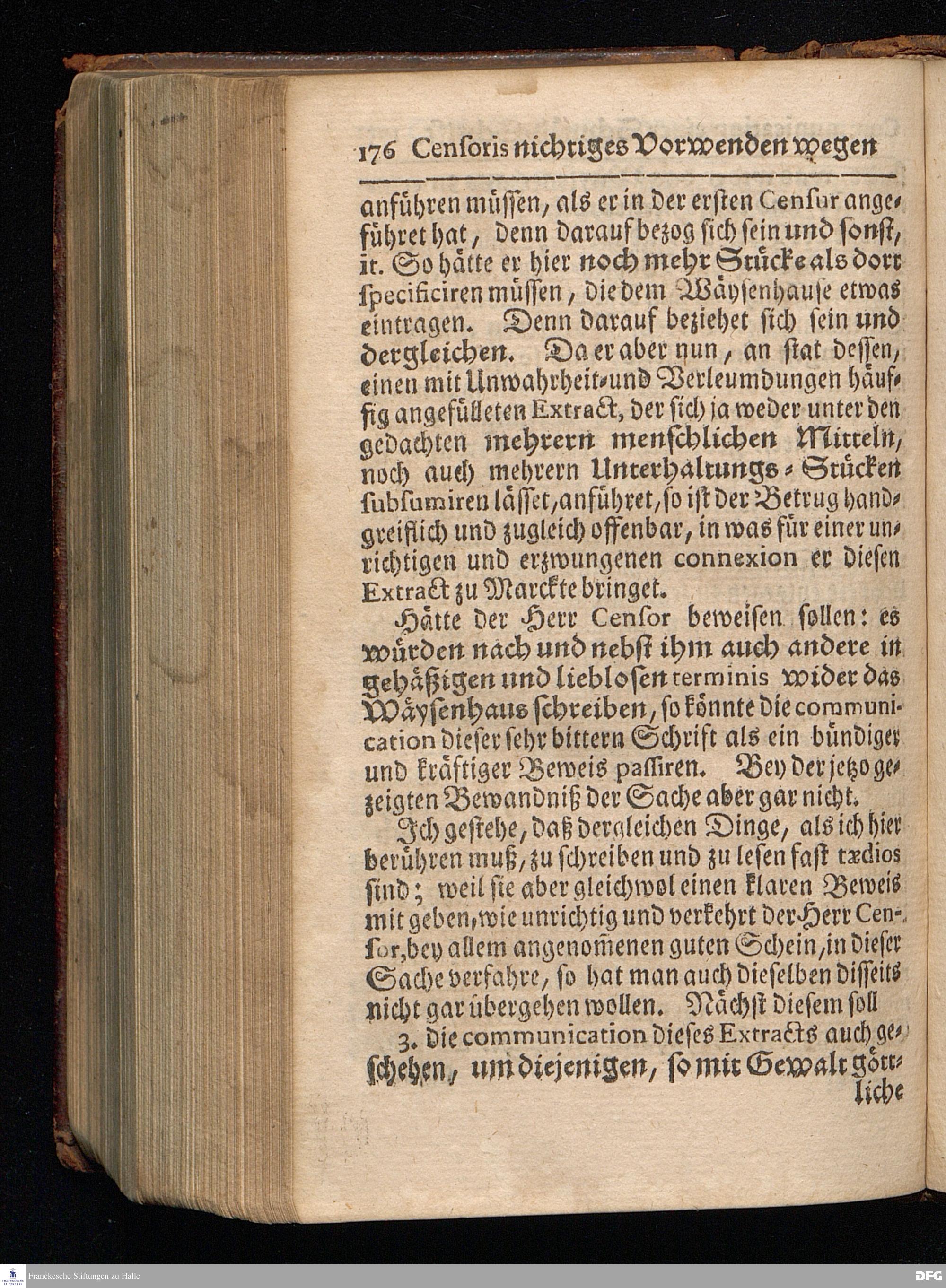 Segens=volle Fußstapfen des noch lebenden und waltenden liebrei=│chen und getreuen GOttes, Zur Beschämung des Unglaubens und Stärckung des Glaubens, entdecket durch eine wahrhafte und umständliche Nachricht von dem Wäysen=Hause und übrigen Anstalten zu Glaucha vor Halle; Welche Im Jahr 1701. zum Druck befördert, ietzo aber zum dritten mal ediret, und bis auf gegenwärtiges Jahr fortgesetzet von August Hermann Francken, S.Theol.Prof.und Past. HALLE, in Verlegung des Wäysen=Hauses, MDCCIX.
