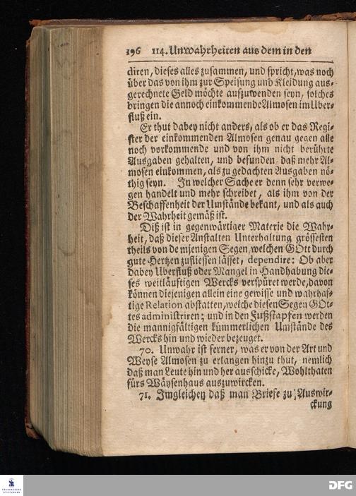 Segens=volle Fußstapfen des noch lebenden und waltenden liebrei=│chen und getreuen GOttes, Zur Beschämung des Unglaubens und Stärckung des Glaubens, entdecket durch eine wahrhafte und umständliche Nachricht von dem Wäysen=Hause und übrigen Anstalten zu Glaucha vor Halle; Welche Im Jahr 1701. zum Druck befördert, ietzo aber zum dritten mal ediret, und bis auf gegenwärtiges Jahr fortgesetzet von August Hermann Francken, S.Theol.Prof.und Past. HALLE, in Verlegung des Wäysen=Hauses, MDCCIX.