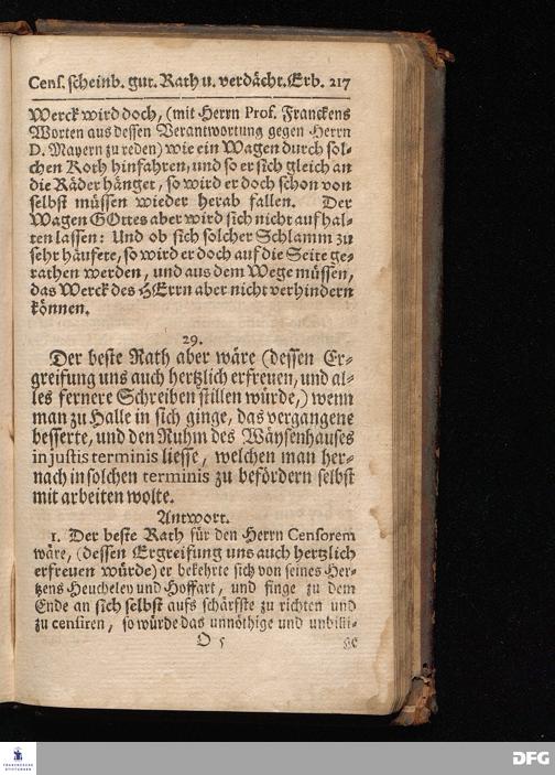 Segens=volle Fußstapfen des noch lebenden und waltenden liebrei=│chen und getreuen GOttes, Zur Beschämung des Unglaubens und Stärckung des Glaubens, entdecket durch eine wahrhafte und umständliche Nachricht von dem Wäysen=Hause und übrigen Anstalten zu Glaucha vor Halle; Welche Im Jahr 1701. zum Druck befördert, ietzo aber zum dritten mal ediret, und bis auf gegenwärtiges Jahr fortgesetzet von August Hermann Francken, S.Theol.Prof.und Past. HALLE, in Verlegung des Wäysen=Hauses, MDCCIX.