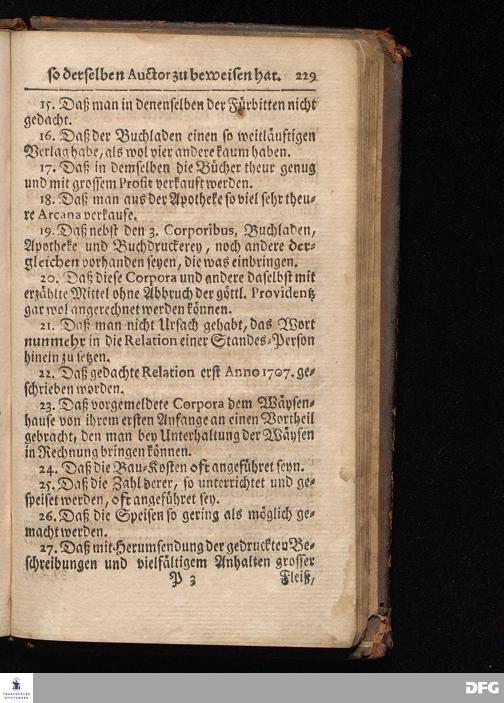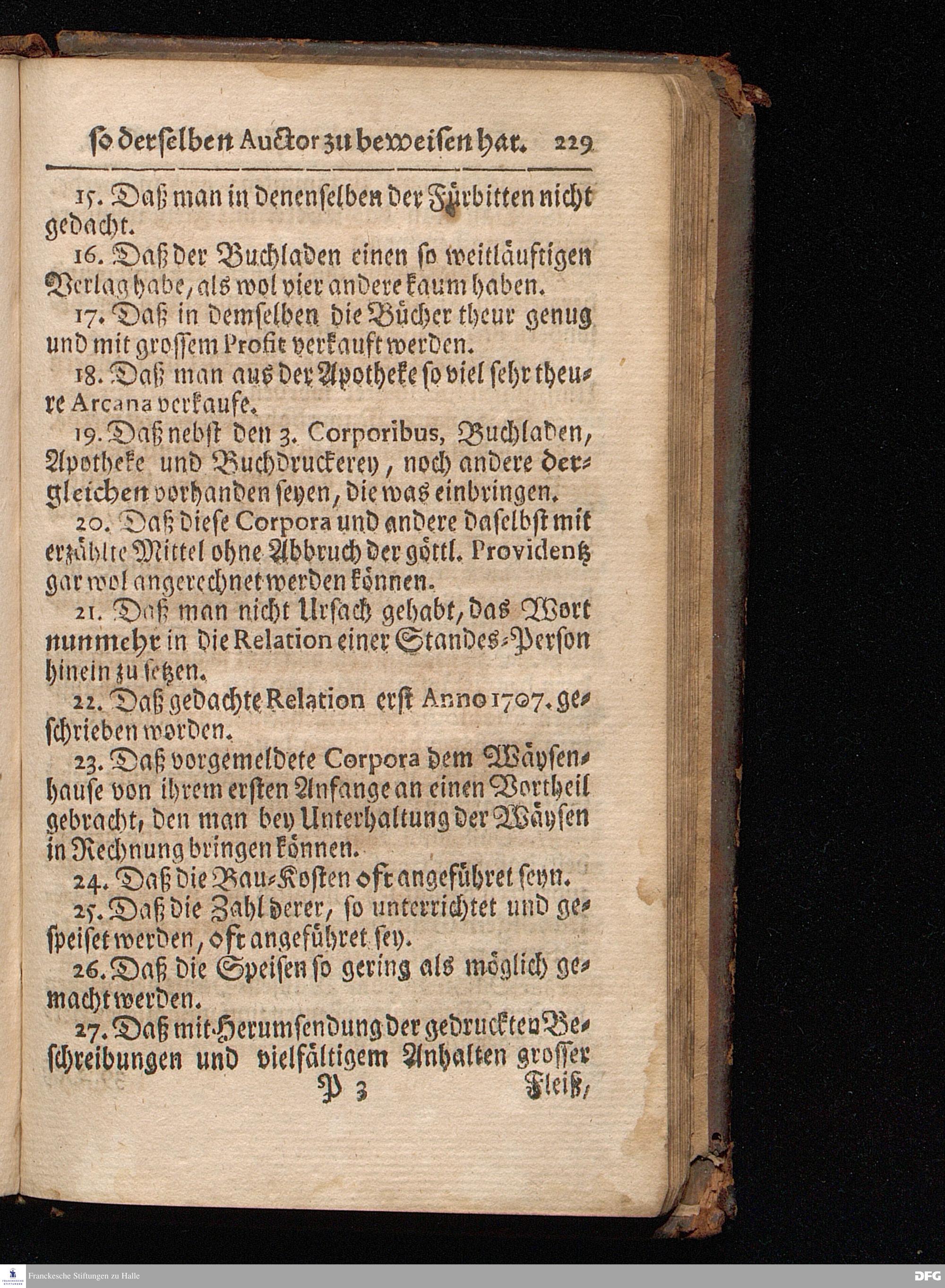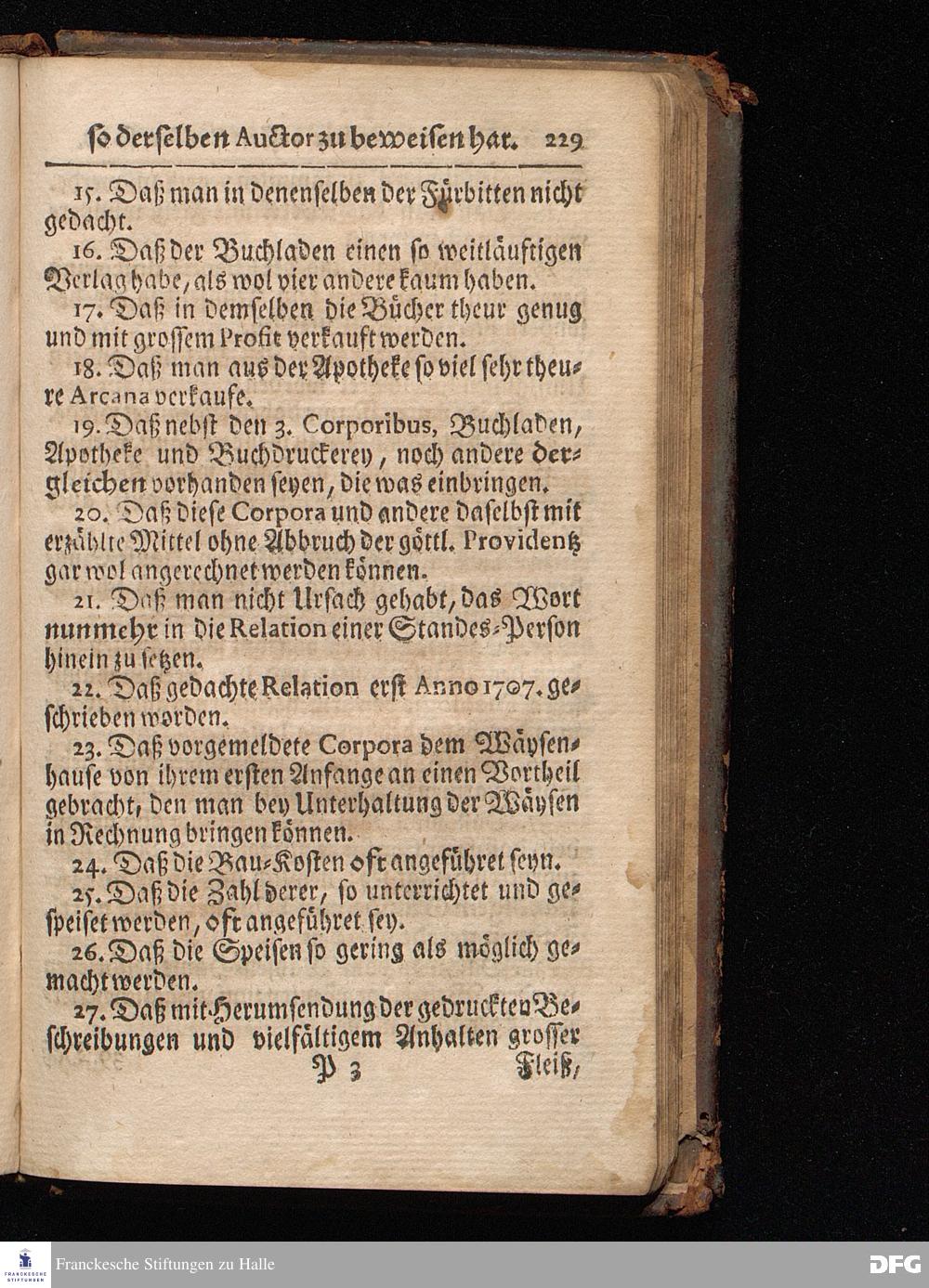 Segens=volle Fußstapfen des noch lebenden und waltenden liebrei=│chen und getreuen GOttes, Zur Beschämung des Unglaubens und Stärckung des Glaubens, entdecket durch eine wahrhafte und umständliche Nachricht von dem Wäysen=Hause und übrigen Anstalten zu Glaucha vor Halle; Welche Im Jahr 1701. zum Druck befördert, ietzo aber zum dritten mal ediret, und bis auf gegenwärtiges Jahr fortgesetzet von August Hermann Francken, S.Theol.Prof.und Past. HALLE, in Verlegung des Wäysen=Hauses, MDCCIX.