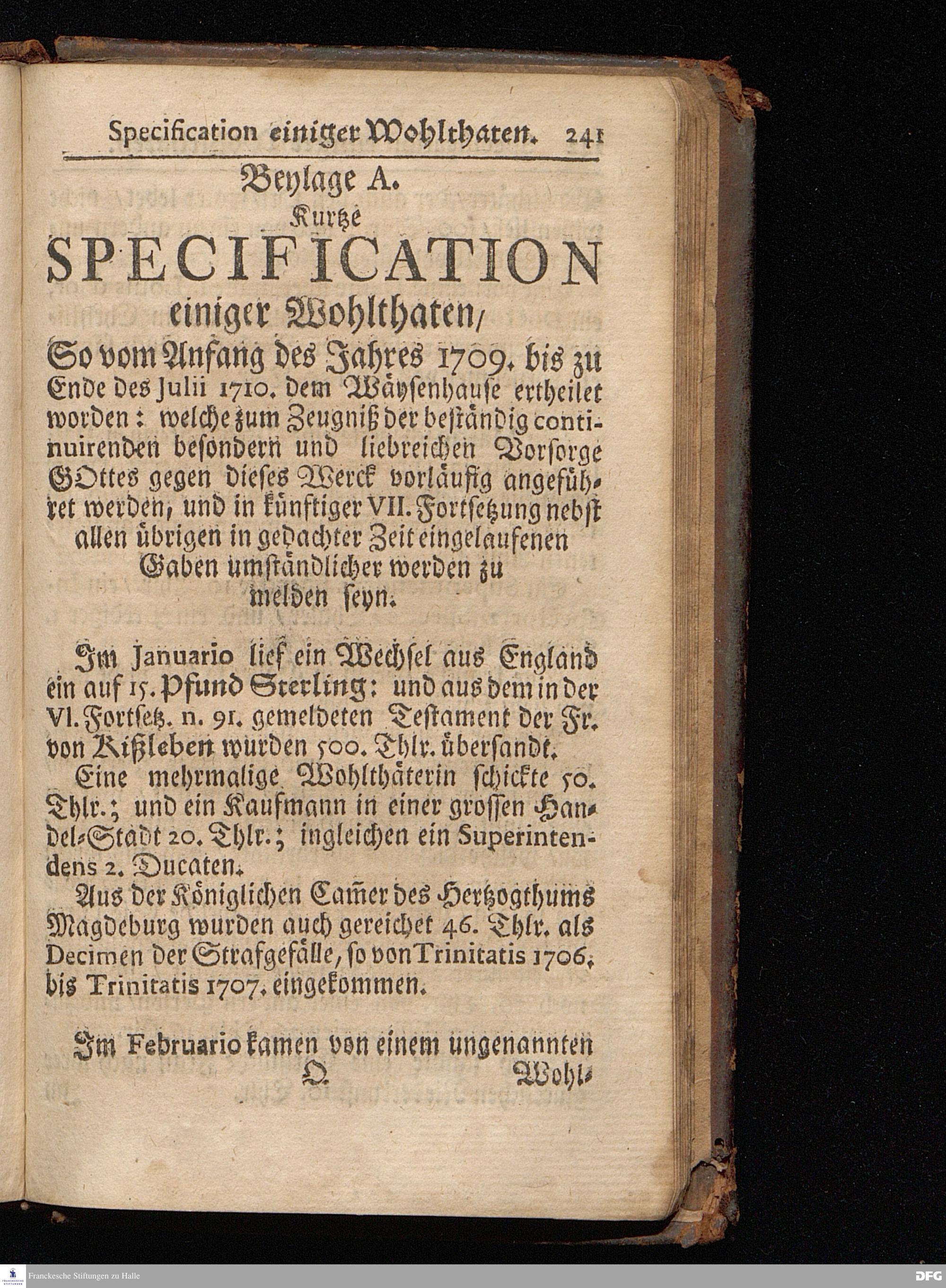 Segens=volle Fußstapfen des noch lebenden und waltenden liebrei=│chen und getreuen GOttes, Zur Beschämung des Unglaubens und Stärckung des Glaubens, entdecket durch eine wahrhafte und umständliche Nachricht von dem Wäysen=Hause und übrigen Anstalten zu Glaucha vor Halle; Welche Im Jahr 1701. zum Druck befördert, ietzo aber zum dritten mal ediret, und bis auf gegenwärtiges Jahr fortgesetzet von August Hermann Francken, S.Theol.Prof.und Past. HALLE, in Verlegung des Wäysen=Hauses, MDCCIX.