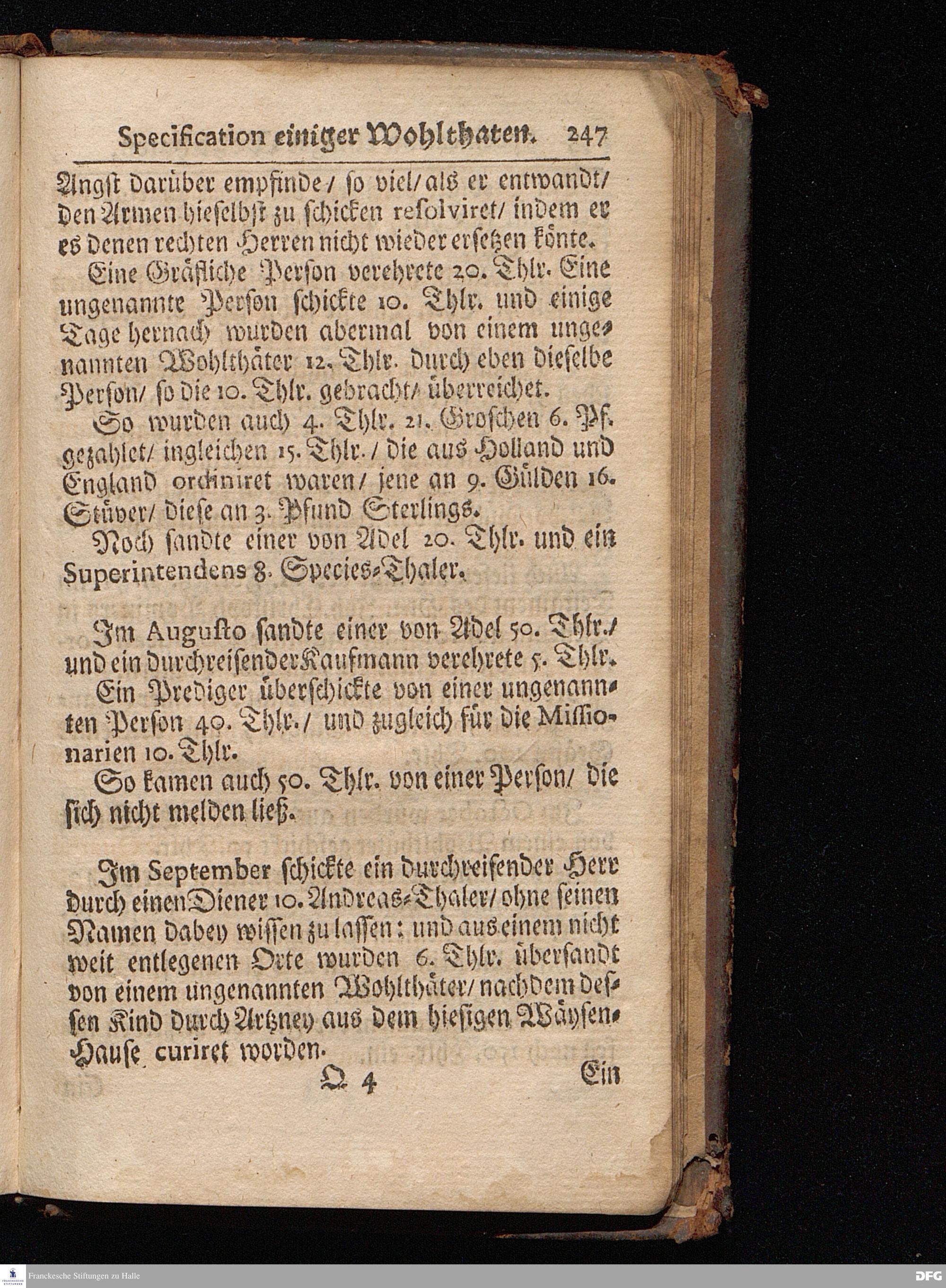 Segens=volle Fußstapfen des noch lebenden und waltenden liebrei=│chen und getreuen GOttes, Zur Beschämung des Unglaubens und Stärckung des Glaubens, entdecket durch eine wahrhafte und umständliche Nachricht von dem Wäysen=Hause und übrigen Anstalten zu Glaucha vor Halle; Welche Im Jahr 1701. zum Druck befördert, ietzo aber zum dritten mal ediret, und bis auf gegenwärtiges Jahr fortgesetzet von August Hermann Francken, S.Theol.Prof.und Past. HALLE, in Verlegung des Wäysen=Hauses, MDCCIX.