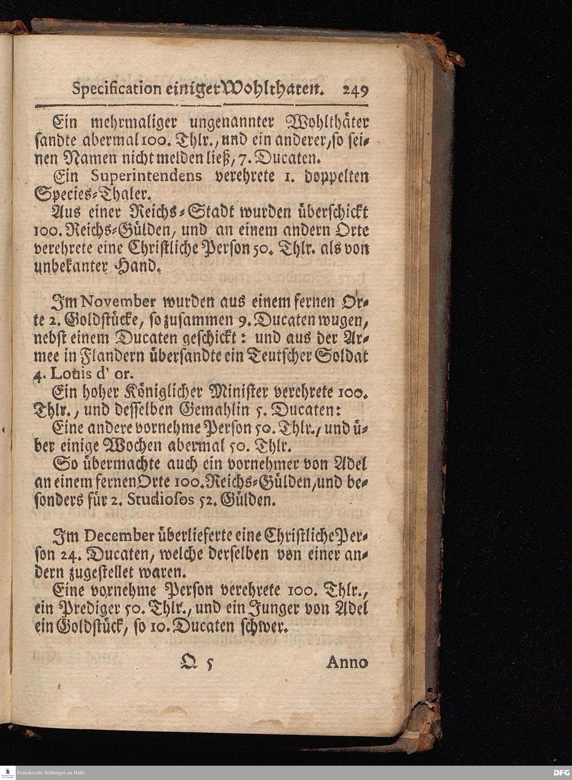 Segens=volle Fußstapfen des noch lebenden und waltenden liebrei=│chen und getreuen GOttes, Zur Beschämung des Unglaubens und Stärckung des Glaubens, entdecket durch eine wahrhafte und umständliche Nachricht von dem Wäysen=Hause und übrigen Anstalten zu Glaucha vor Halle; Welche Im Jahr 1701. zum Druck befördert, ietzo aber zum dritten mal ediret, und bis auf gegenwärtiges Jahr fortgesetzet von August Hermann Francken, S.Theol.Prof.und Past. HALLE, in Verlegung des Wäysen=Hauses, MDCCIX.