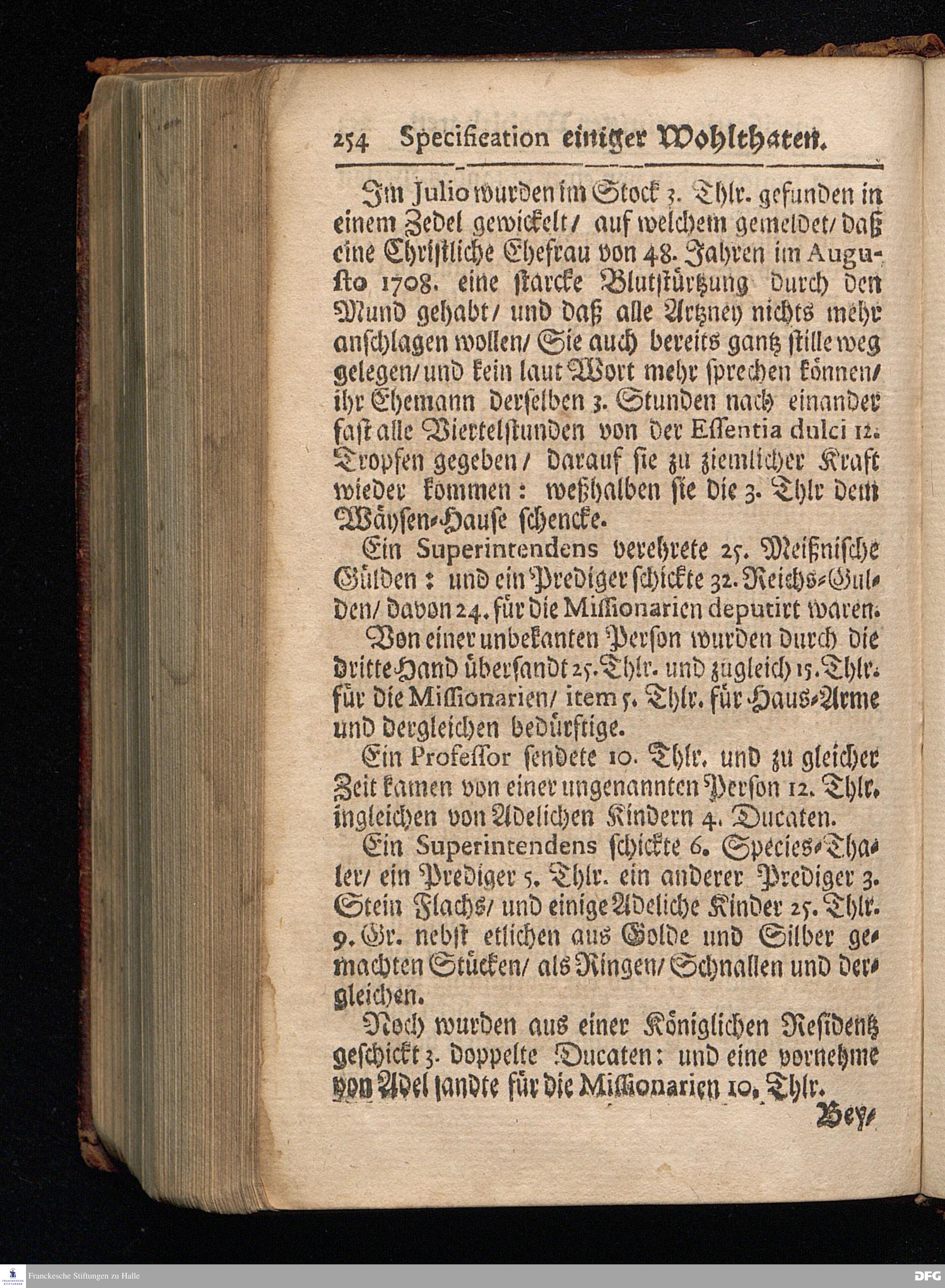 Segens=volle Fußstapfen des noch lebenden und waltenden liebrei=│chen und getreuen GOttes, Zur Beschämung des Unglaubens und Stärckung des Glaubens, entdecket durch eine wahrhafte und umständliche Nachricht von dem Wäysen=Hause und übrigen Anstalten zu Glaucha vor Halle; Welche Im Jahr 1701. zum Druck befördert, ietzo aber zum dritten mal ediret, und bis auf gegenwärtiges Jahr fortgesetzet von August Hermann Francken, S.Theol.Prof.und Past. HALLE, in Verlegung des Wäysen=Hauses, MDCCIX.