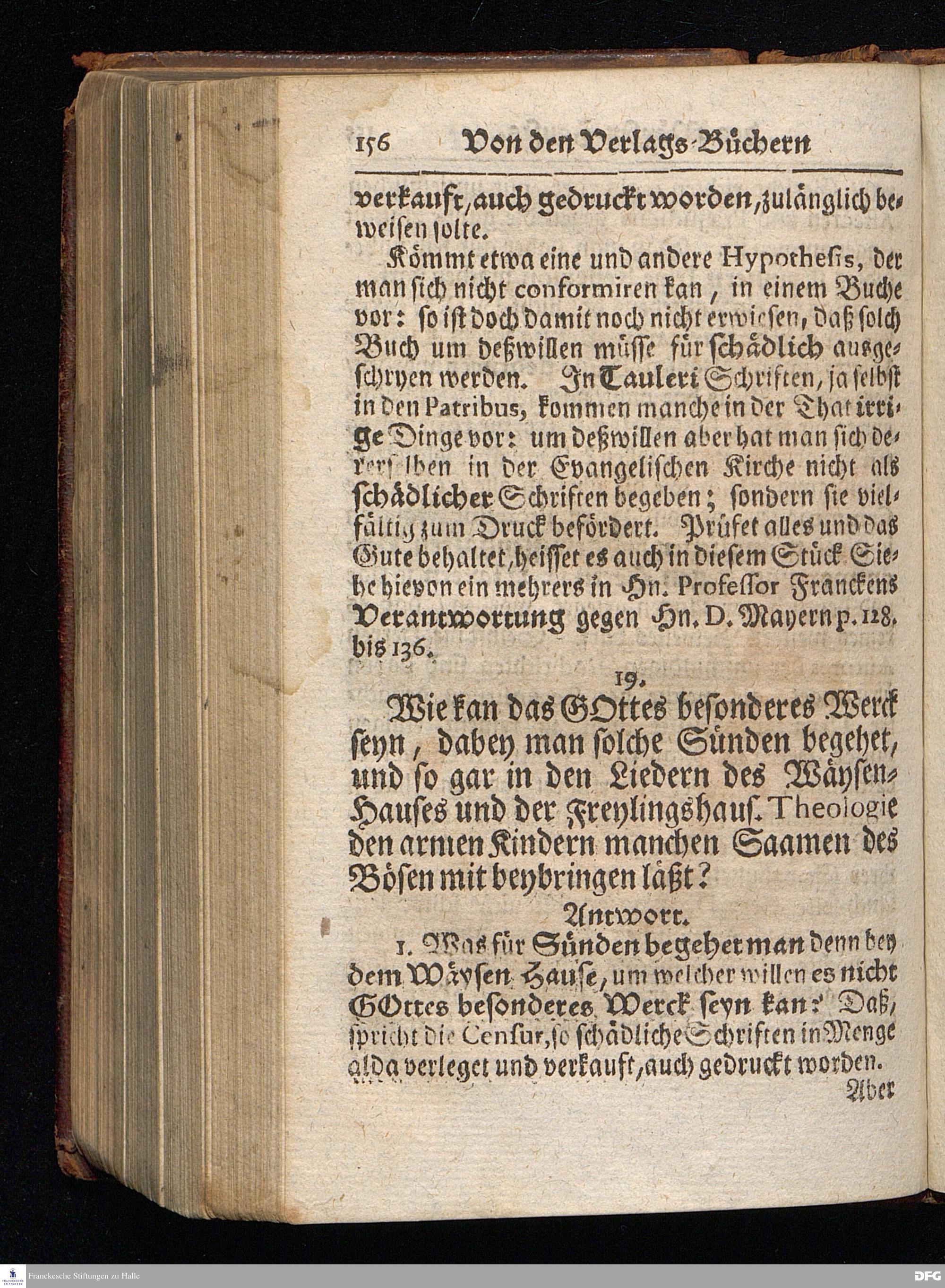 Segens=volle Fußstapfen des noch lebenden und waltenden liebrei=│chen und getreuen GOttes, Zur Beschämung des Unglaubens und Stärckung des Glaubens, entdecket durch eine wahrhafte und umständliche Nachricht von dem Wäysen=Hause und übrigen Anstalten zu Glaucha vor Halle; Welche Im Jahr 1701. zum Druck befördert, ietzo aber zum dritten mal ediret, und bis auf gegenwärtiges Jahr fortgesetzet von August Hermann Francken, S.Theol.Prof.und Past. HALLE, in Verlegung des Wäysen=Hauses, MDCCIX.