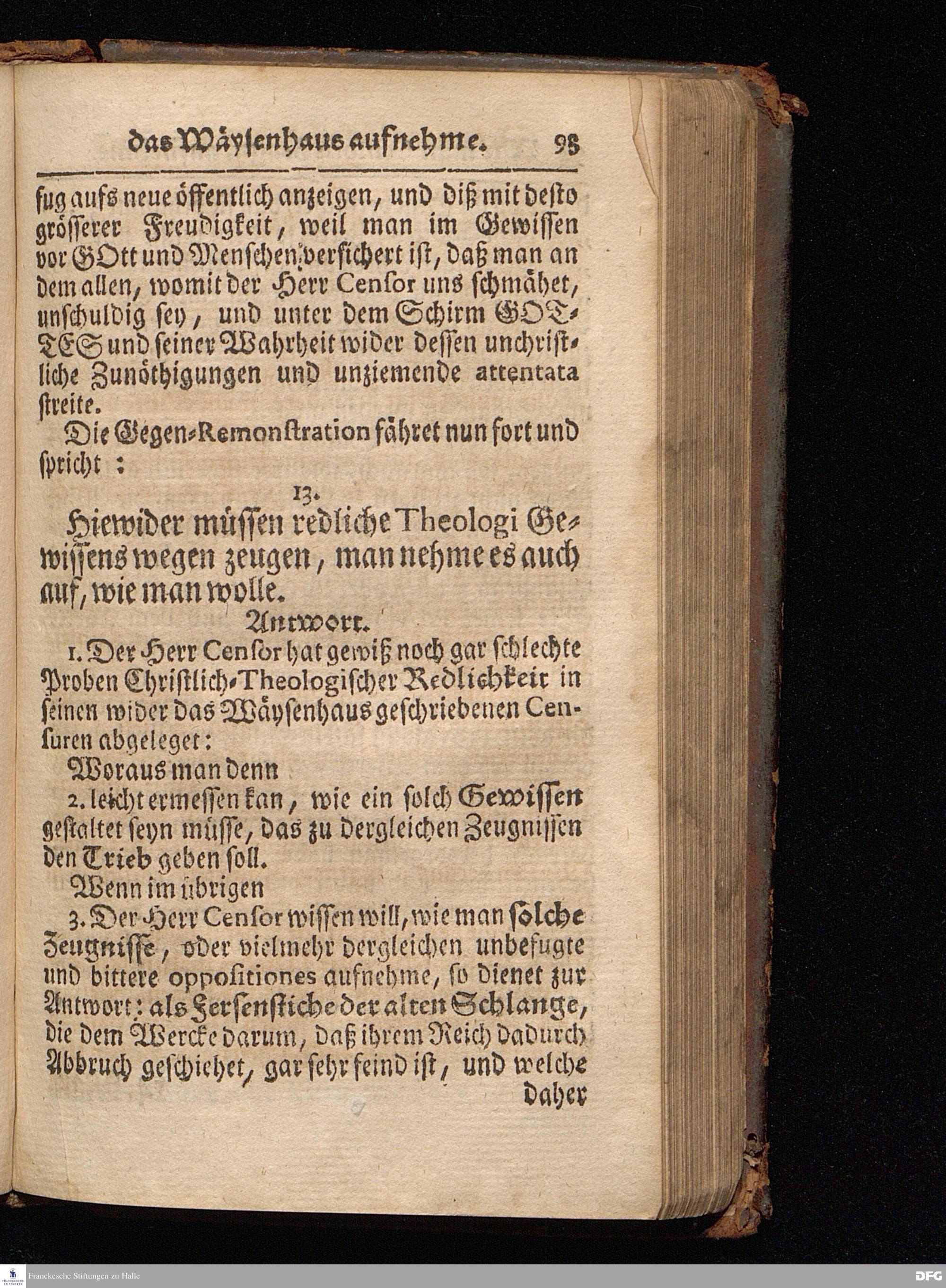 Segens=volle Fußstapfen des noch lebenden und waltenden liebrei=│chen und getreuen GOttes, Zur Beschämung des Unglaubens und Stärckung des Glaubens, entdecket durch eine wahrhafte und umständliche Nachricht von dem Wäysen=Hause und übrigen Anstalten zu Glaucha vor Halle; Welche Im Jahr 1701. zum Druck befördert, ietzo aber zum dritten mal ediret, und bis auf gegenwärtiges Jahr fortgesetzet von August Hermann Francken, S.Theol.Prof.und Past. HALLE, in Verlegung des Wäysen=Hauses, MDCCIX.