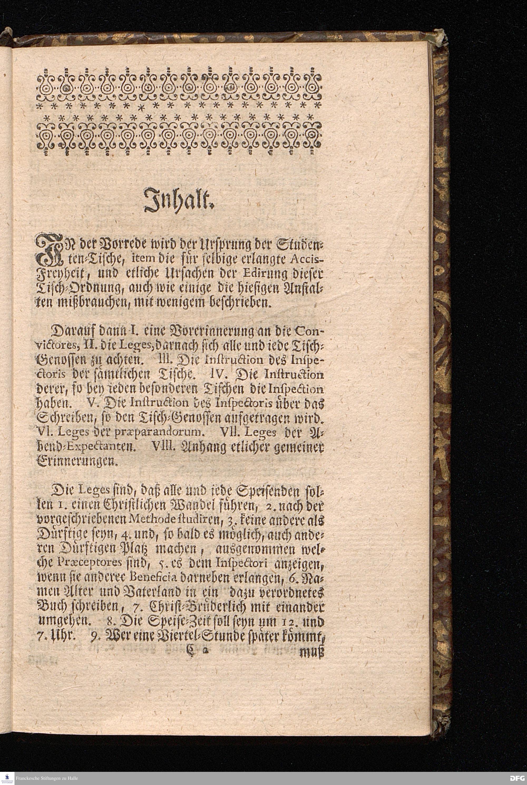 Der von GOTT in dem Wäysenhause zu Glaucha an Halle ietzo bey nahe für 600. Personen Zubereitete Tisch, Nach seinem Anfang, Fortgang, gegenwärtigem Zustand und eingeführter Tisch=Ordnung, kürtzlich beschrieben, mit angehängten Zwey Erweckungs=Reden, Deren die erste Anno 1699.[vielmehr 1700!] bey Einweihung des damaligen kleinern Speise=Saals, Die andere Anno 1711. bey Einweihung des grossen Saals gehalten worden, von August Hermann Francken / S.Theol.Prof.& Past.zu S.Ulrich / und des Gymnasii Scholarcha, [5.Auflage.] HALLE, in Verlegung des Wäysenhauses. 1722.