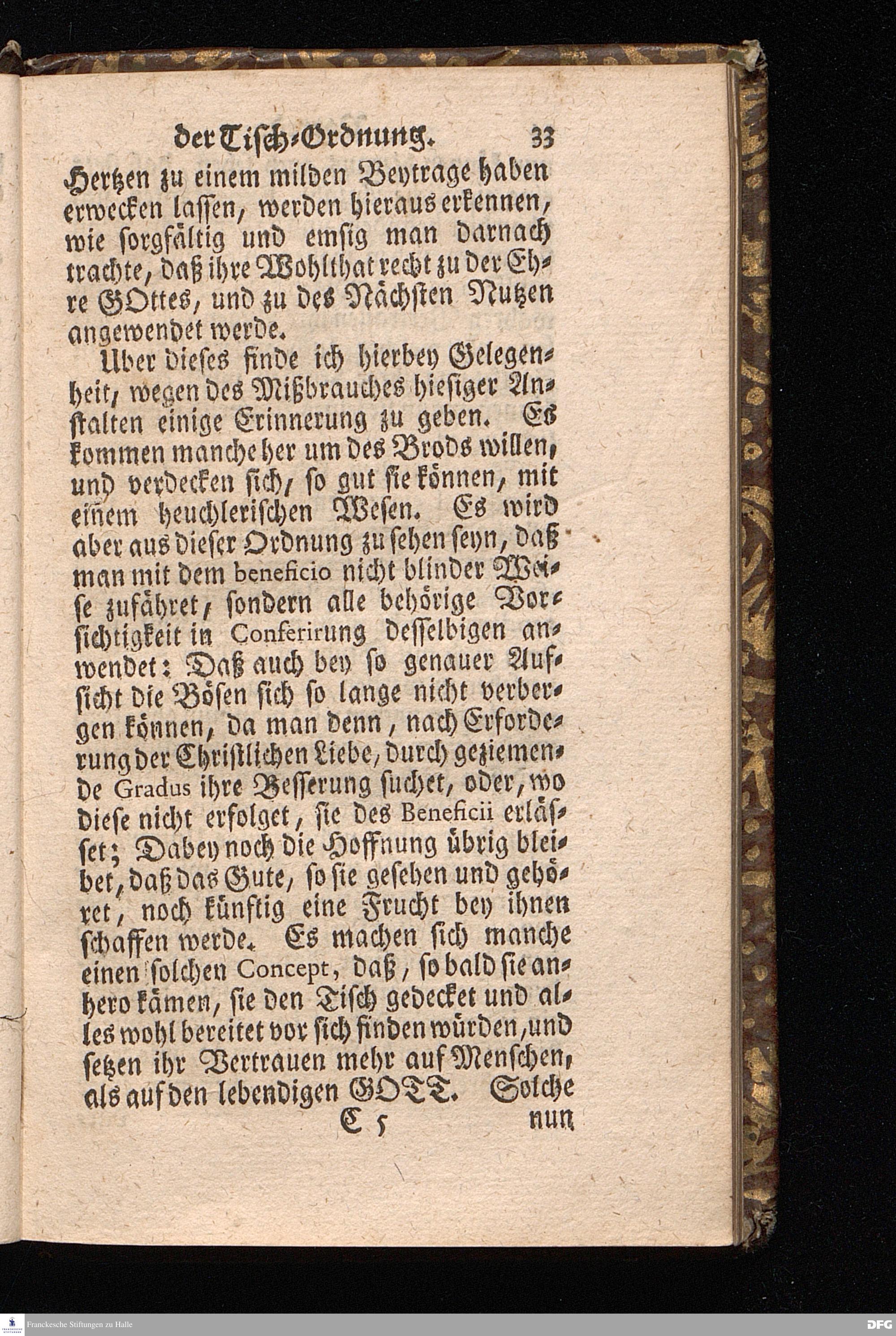 Der von GOTT in dem Wäysenhause zu Glaucha an Halle ietzo bey nahe für 600. Personen Zubereitete Tisch, Nach seinem Anfang, Fortgang, gegenwärtigem Zustand und eingeführter Tisch=Ordnung, kürtzlich beschrieben, mit angehängten Zwey Erweckungs=Reden, Deren die erste Anno 1699.[vielmehr 1700!] bey Einweihung des damaligen kleinern Speise=Saals, Die andere Anno 1711. bey Einweihung des grossen Saals gehalten worden, von August Hermann Francken / S.Theol.Prof.& Past.zu S.Ulrich / und des Gymnasii Scholarcha, [5.Auflage.] HALLE, in Verlegung des Wäysenhauses. 1722.