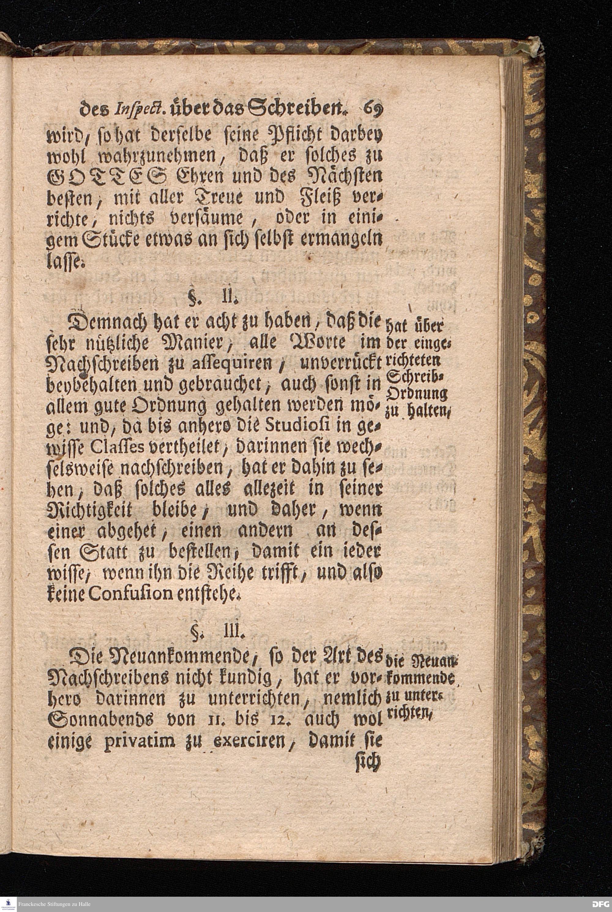 Der von GOTT in dem Wäysenhause zu Glaucha an Halle ietzo bey nahe für 600. Personen Zubereitete Tisch, Nach seinem Anfang, Fortgang, gegenwärtigem Zustand und eingeführter Tisch=Ordnung, kürtzlich beschrieben, mit angehängten Zwey Erweckungs=Reden, Deren die erste Anno 1699.[vielmehr 1700!] bey Einweihung des damaligen kleinern Speise=Saals, Die andere Anno 1711. bey Einweihung des grossen Saals gehalten worden, von August Hermann Francken / S.Theol.Prof.& Past.zu S.Ulrich / und des Gymnasii Scholarcha, [5.Auflage.] HALLE, in Verlegung des Wäysenhauses. 1722.