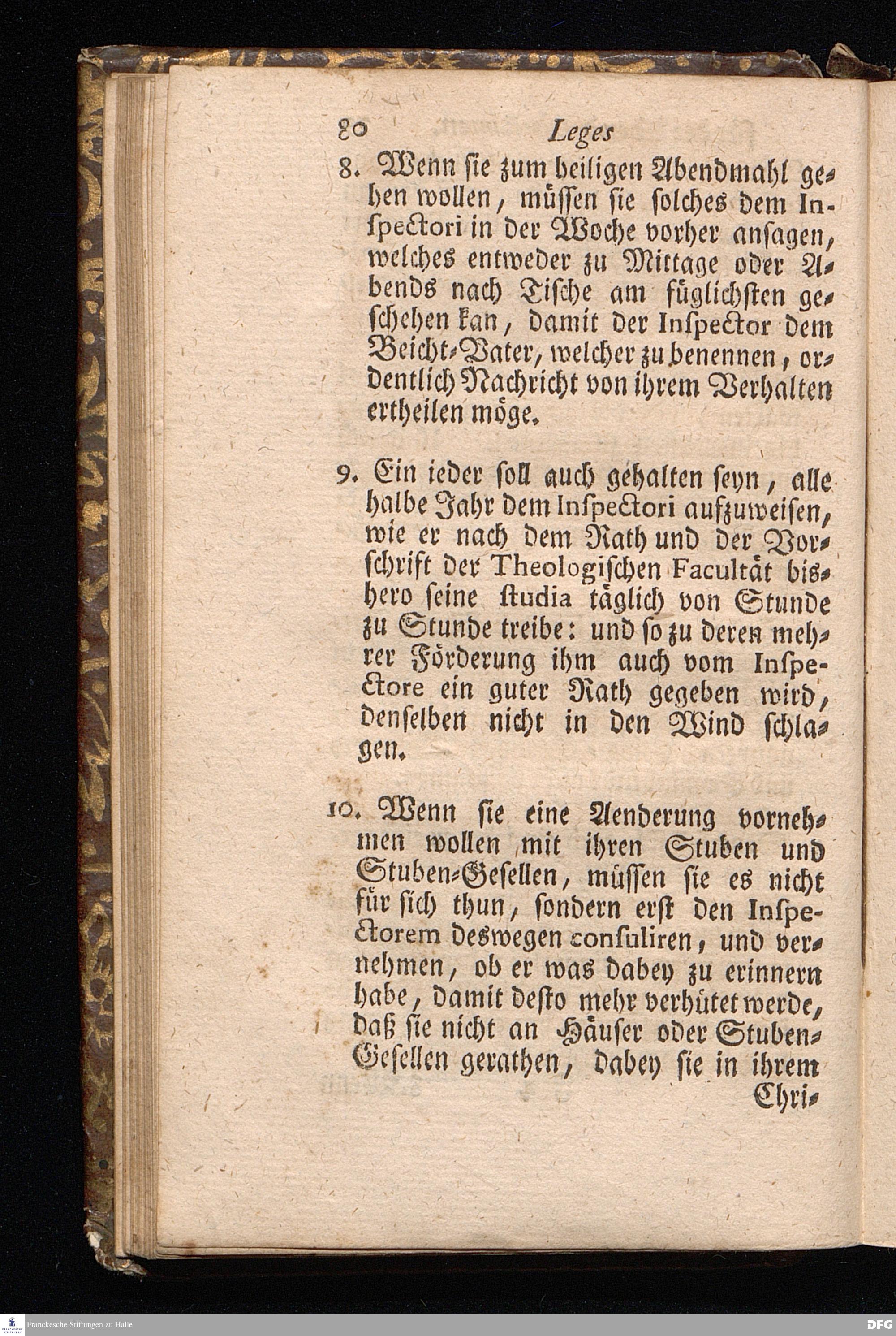Der von GOTT in dem Wäysenhause zu Glaucha an Halle ietzo bey nahe für 600. Personen Zubereitete Tisch, Nach seinem Anfang, Fortgang, gegenwärtigem Zustand und eingeführter Tisch=Ordnung, kürtzlich beschrieben, mit angehängten Zwey Erweckungs=Reden, Deren die erste Anno 1699.[vielmehr 1700!] bey Einweihung des damaligen kleinern Speise=Saals, Die andere Anno 1711. bey Einweihung des grossen Saals gehalten worden, von August Hermann Francken / S.Theol.Prof.& Past.zu S.Ulrich / und des Gymnasii Scholarcha, [5.Auflage.] HALLE, in Verlegung des Wäysenhauses. 1722.