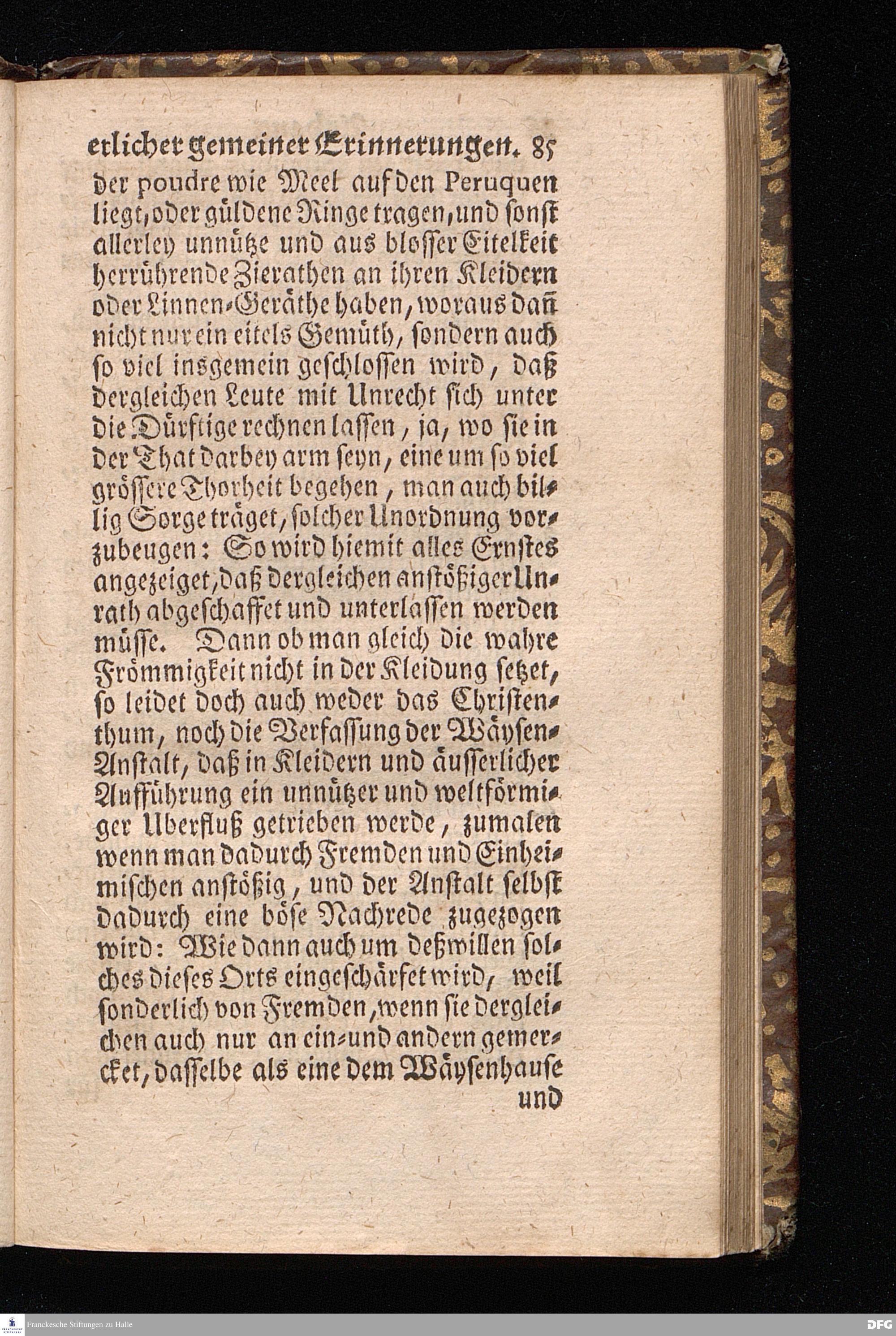 Der von GOTT in dem Wäysenhause zu Glaucha an Halle ietzo bey nahe für 600. Personen Zubereitete Tisch, Nach seinem Anfang, Fortgang, gegenwärtigem Zustand und eingeführter Tisch=Ordnung, kürtzlich beschrieben, mit angehängten Zwey Erweckungs=Reden, Deren die erste Anno 1699.[vielmehr 1700!] bey Einweihung des damaligen kleinern Speise=Saals, Die andere Anno 1711. bey Einweihung des grossen Saals gehalten worden, von August Hermann Francken / S.Theol.Prof.& Past.zu S.Ulrich / und des Gymnasii Scholarcha, [5.Auflage.] HALLE, in Verlegung des Wäysenhauses. 1722.