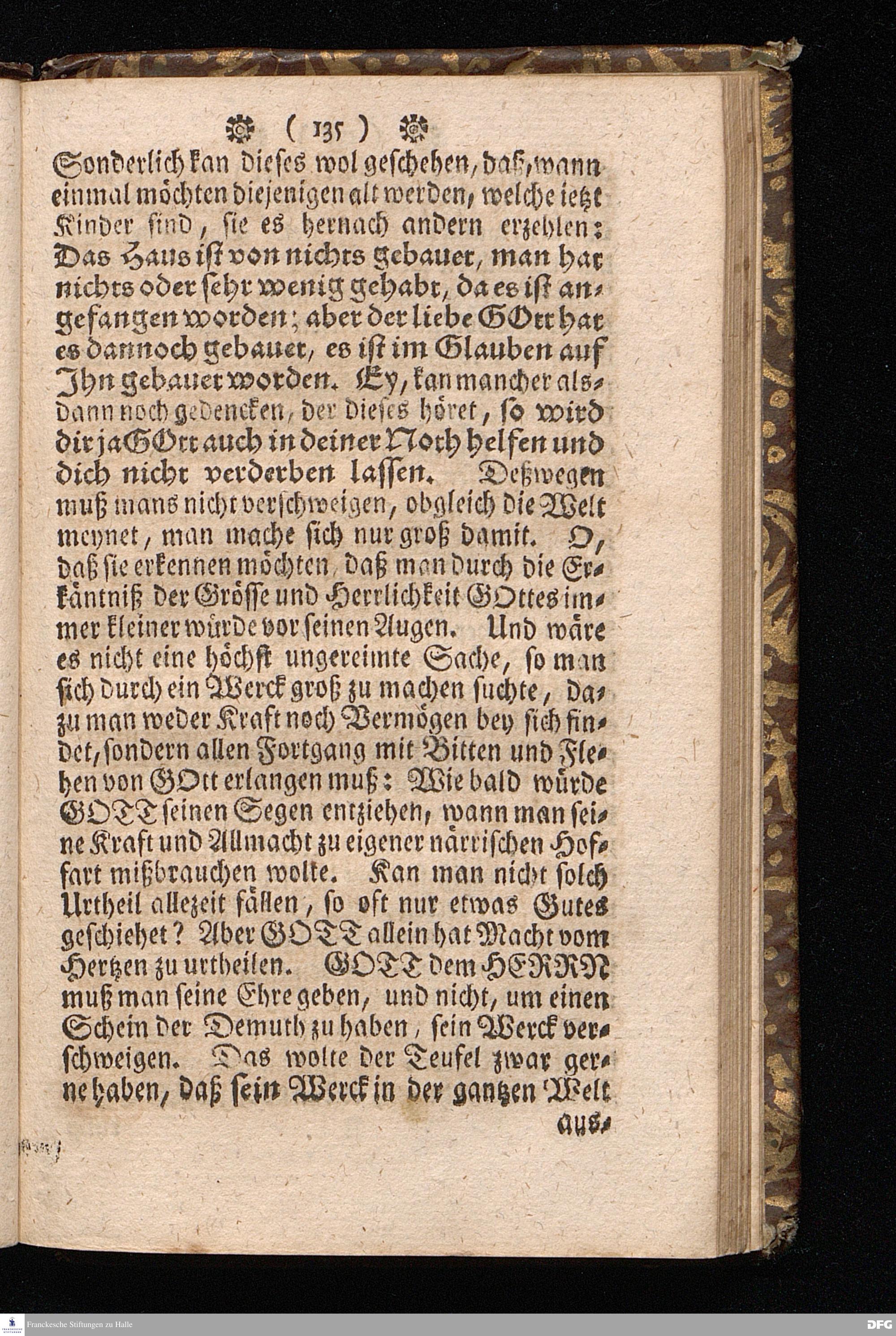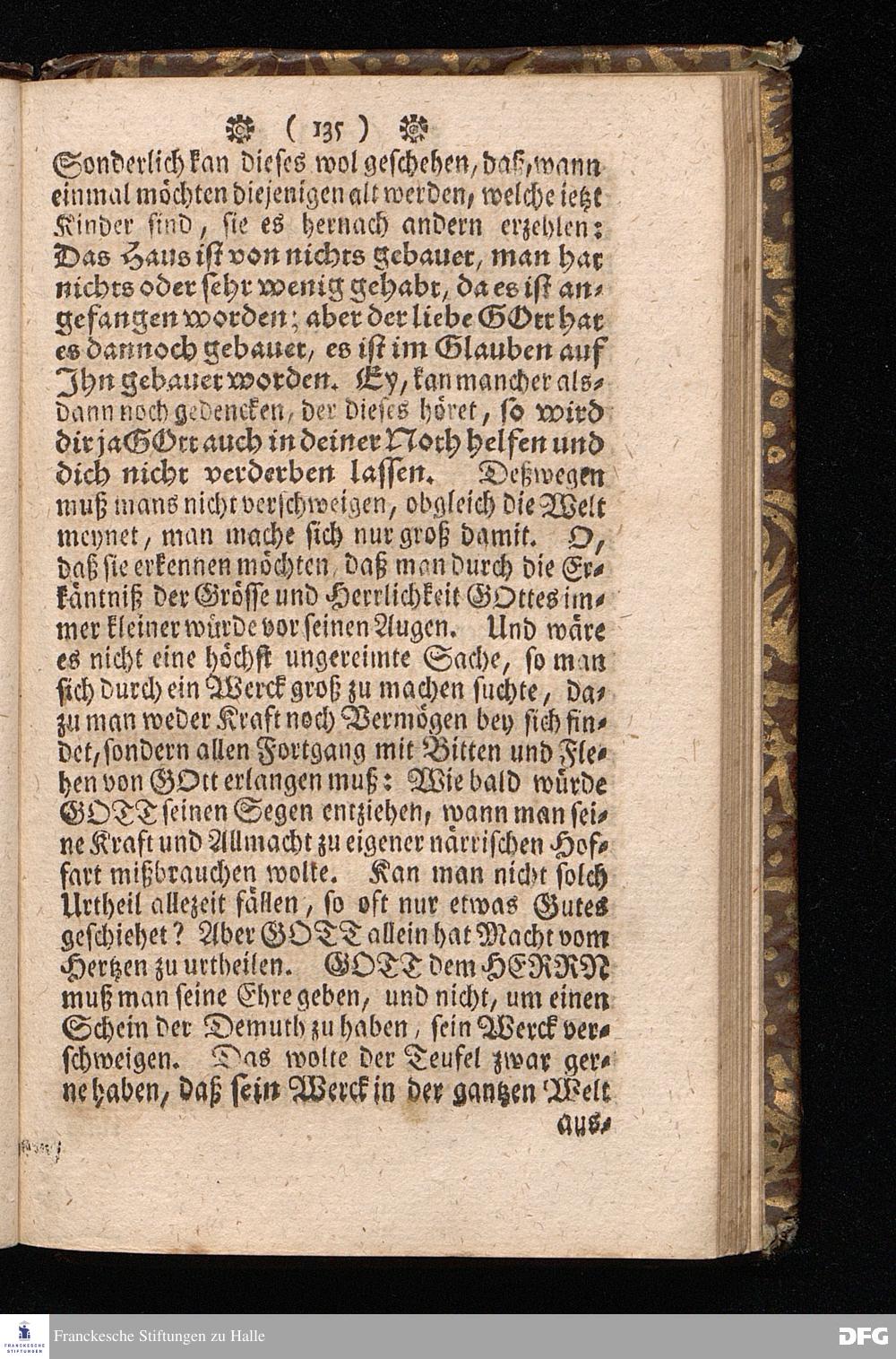 Der von GOTT in dem Wäysenhause zu Glaucha an Halle ietzo bey nahe für 600. Personen Zubereitete Tisch, Nach seinem Anfang, Fortgang, gegenwärtigem Zustand und eingeführter Tisch=Ordnung, kürtzlich beschrieben, mit angehängten Zwey Erweckungs=Reden, Deren die erste Anno 1699.[vielmehr 1700!] bey Einweihung des damaligen kleinern Speise=Saals, Die andere Anno 1711. bey Einweihung des grossen Saals gehalten worden, von August Hermann Francken / S.Theol.Prof.& Past.zu S.Ulrich / und des Gymnasii Scholarcha, [5.Auflage.] HALLE, in Verlegung des Wäysenhauses. 1722.