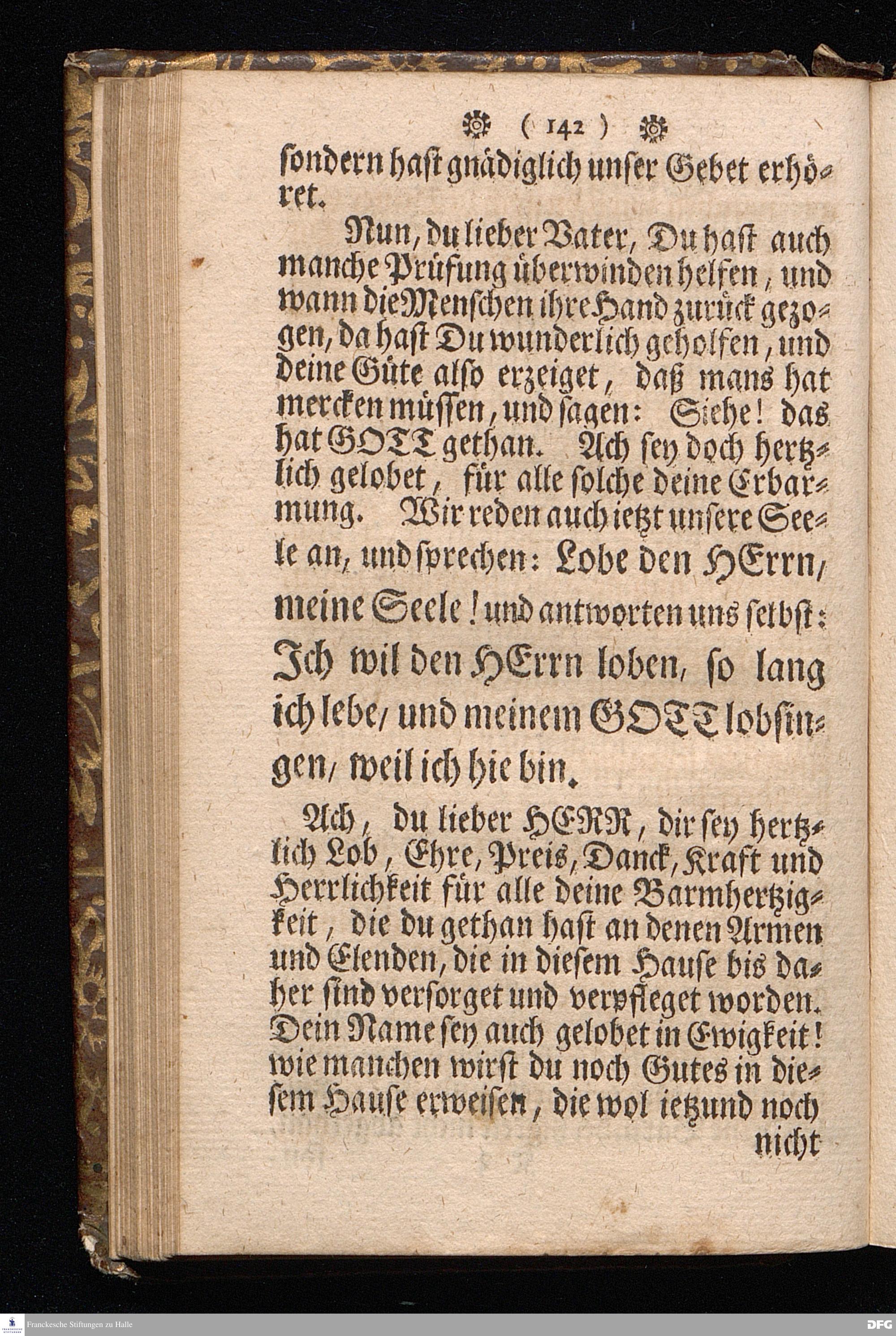 Der von GOTT in dem Wäysenhause zu Glaucha an Halle ietzo bey nahe für 600. Personen Zubereitete Tisch, Nach seinem Anfang, Fortgang, gegenwärtigem Zustand und eingeführter Tisch=Ordnung, kürtzlich beschrieben, mit angehängten Zwey Erweckungs=Reden, Deren die erste Anno 1699.[vielmehr 1700!] bey Einweihung des damaligen kleinern Speise=Saals, Die andere Anno 1711. bey Einweihung des grossen Saals gehalten worden, von August Hermann Francken / S.Theol.Prof.& Past.zu S.Ulrich / und des Gymnasii Scholarcha, [5.Auflage.] HALLE, in Verlegung des Wäysenhauses. 1722.