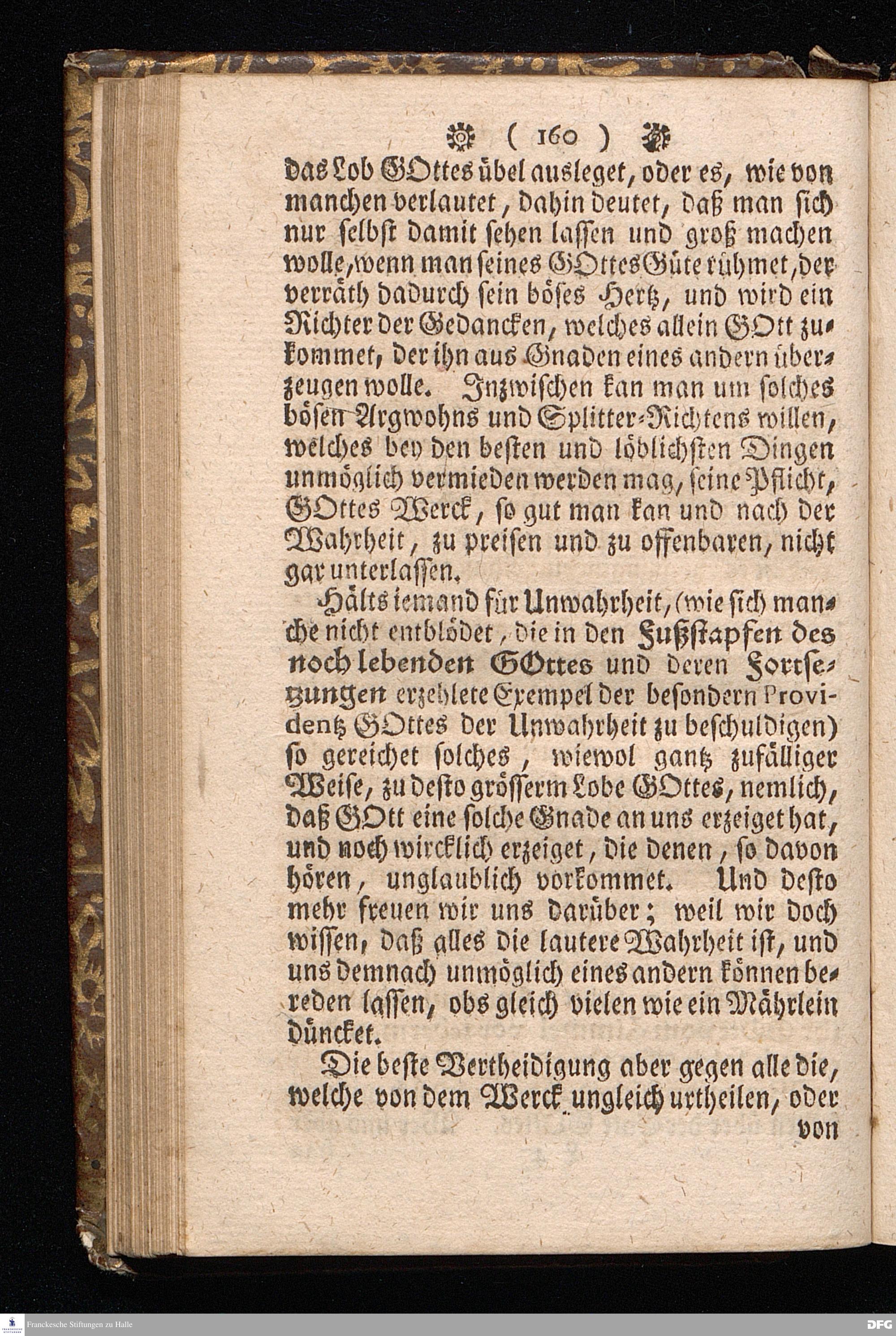 Der von GOTT in dem Wäysenhause zu Glaucha an Halle ietzo bey nahe für 600. Personen Zubereitete Tisch, Nach seinem Anfang, Fortgang, gegenwärtigem Zustand und eingeführter Tisch=Ordnung, kürtzlich beschrieben, mit angehängten Zwey Erweckungs=Reden, Deren die erste Anno 1699.[vielmehr 1700!] bey Einweihung des damaligen kleinern Speise=Saals, Die andere Anno 1711. bey Einweihung des grossen Saals gehalten worden, von August Hermann Francken / S.Theol.Prof.& Past.zu S.Ulrich / und des Gymnasii Scholarcha, [5.Auflage.] HALLE, in Verlegung des Wäysenhauses. 1722.