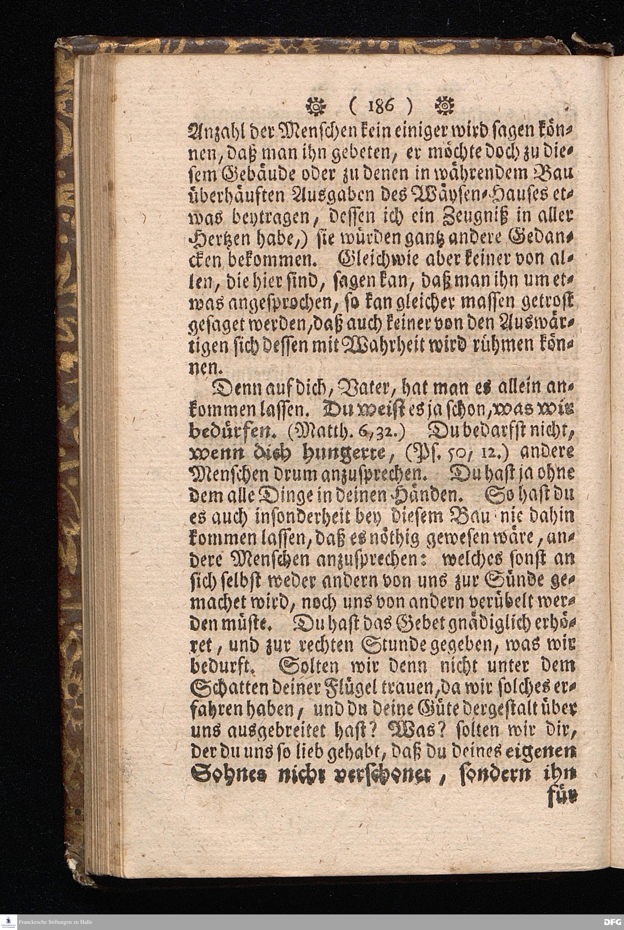 Der von GOTT in dem Wäysenhause zu Glaucha an Halle ietzo bey nahe für 600. Personen Zubereitete Tisch, Nach seinem Anfang, Fortgang, gegenwärtigem Zustand und eingeführter Tisch=Ordnung, kürtzlich beschrieben, mit angehängten Zwey Erweckungs=Reden, Deren die erste Anno 1699.[vielmehr 1700!] bey Einweihung des damaligen kleinern Speise=Saals, Die andere Anno 1711. bey Einweihung des grossen Saals gehalten worden, von August Hermann Francken / S.Theol.Prof.& Past.zu S.Ulrich / und des Gymnasii Scholarcha, [5.Auflage.] HALLE, in Verlegung des Wäysenhauses. 1722.