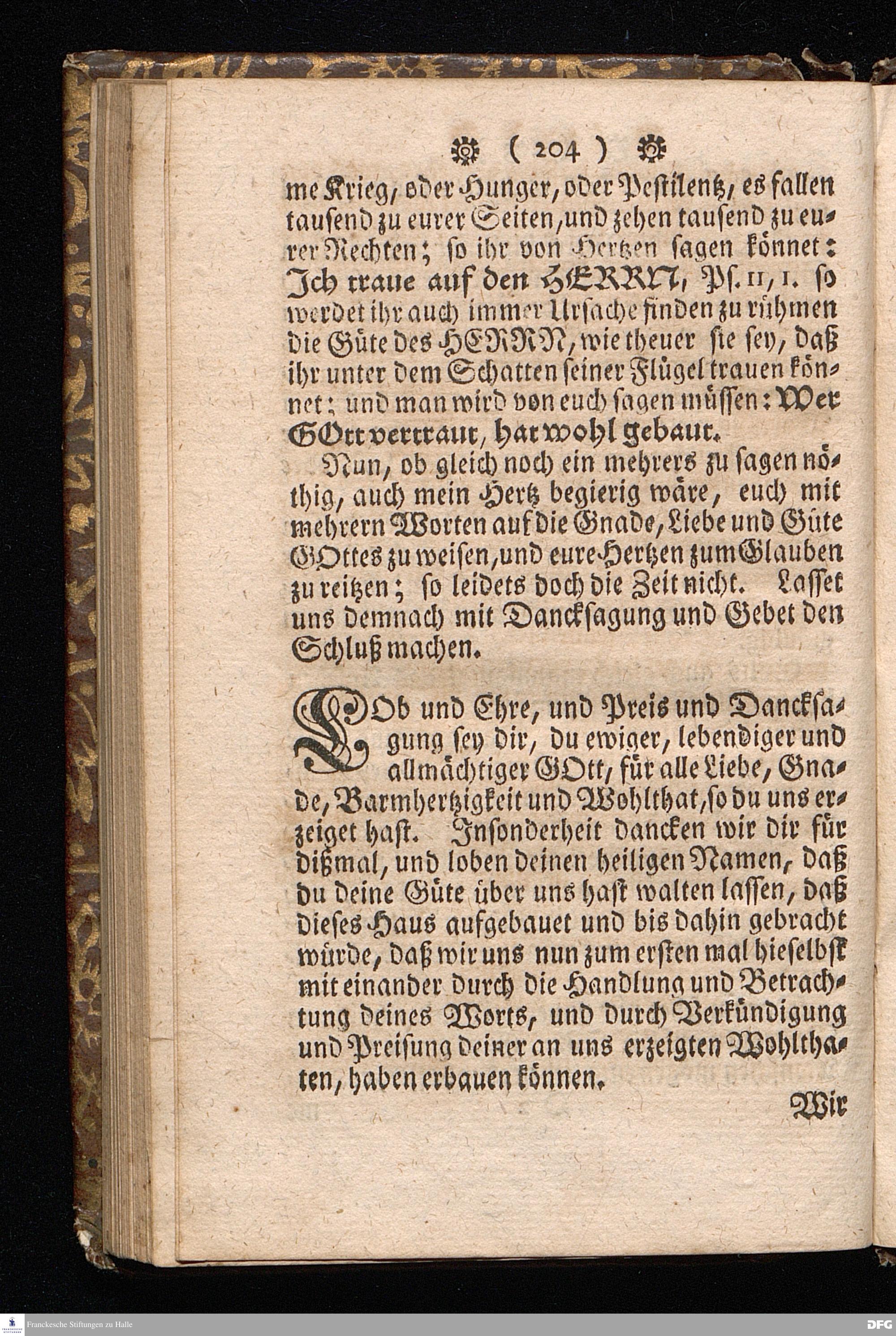 Der von GOTT in dem Wäysenhause zu Glaucha an Halle ietzo bey nahe für 600. Personen Zubereitete Tisch, Nach seinem Anfang, Fortgang, gegenwärtigem Zustand und eingeführter Tisch=Ordnung, kürtzlich beschrieben, mit angehängten Zwey Erweckungs=Reden, Deren die erste Anno 1699.[vielmehr 1700!] bey Einweihung des damaligen kleinern Speise=Saals, Die andere Anno 1711. bey Einweihung des grossen Saals gehalten worden, von August Hermann Francken / S.Theol.Prof.& Past.zu S.Ulrich / und des Gymnasii Scholarcha, [5.Auflage.] HALLE, in Verlegung des Wäysenhauses. 1722.