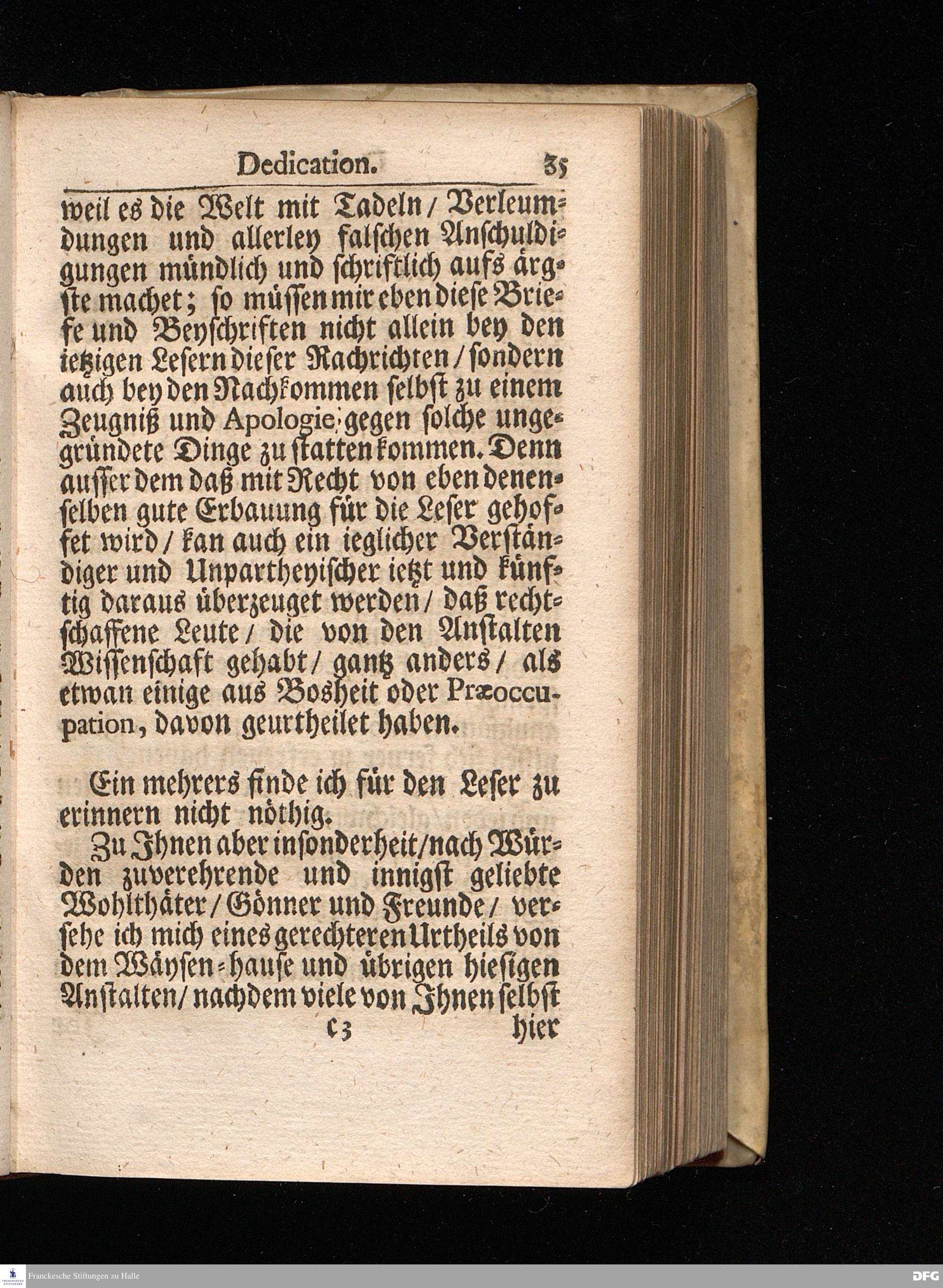 Segens=volle Fußstapfen des noch lebenden und waltenden liebreichen und getreuen GOttes / Zur Beschämung des Unglaubens und Stärckung des Glaubens entdecket durch eine wahrhafte und umständliche Nachricht von dem Wäysen=Hause und übrigen Anstalten zu Glaucha vor Halle: Welche im Jahr 1701. zum Druck befördert; ietzo aber zum dritten mal ediret / und bis auf gegenwärtiges Jahr fortgesetzet von August Herm.Francken / S.Theol.Prof.und Past. Halle / in Verlegung des Wäysen=hauses / MDCCIX.
