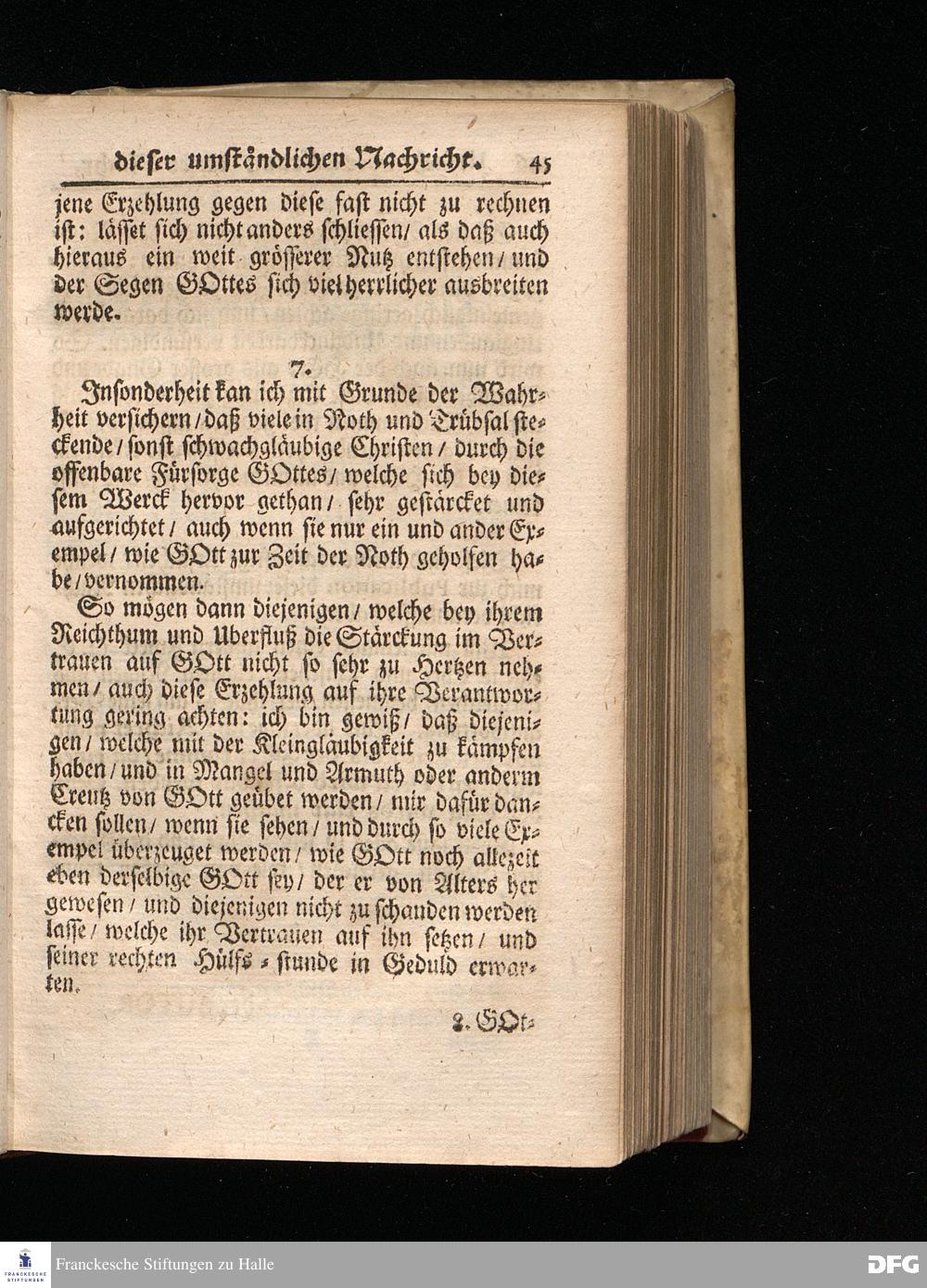 Segens=volle Fußstapfen des noch lebenden und waltenden liebreichen und getreuen GOttes / Zur Beschämung des Unglaubens und Stärckung des Glaubens entdecket durch eine wahrhafte und umständliche Nachricht von dem Wäysen=Hause und übrigen Anstalten zu Glaucha vor Halle: Welche im Jahr 1701. zum Druck befördert; ietzo aber zum dritten mal ediret / und bis auf gegenwärtiges Jahr fortgesetzet von August Herm.Francken / S.Theol.Prof.und Past. Halle / in Verlegung des Wäysen=hauses / MDCCIX.
