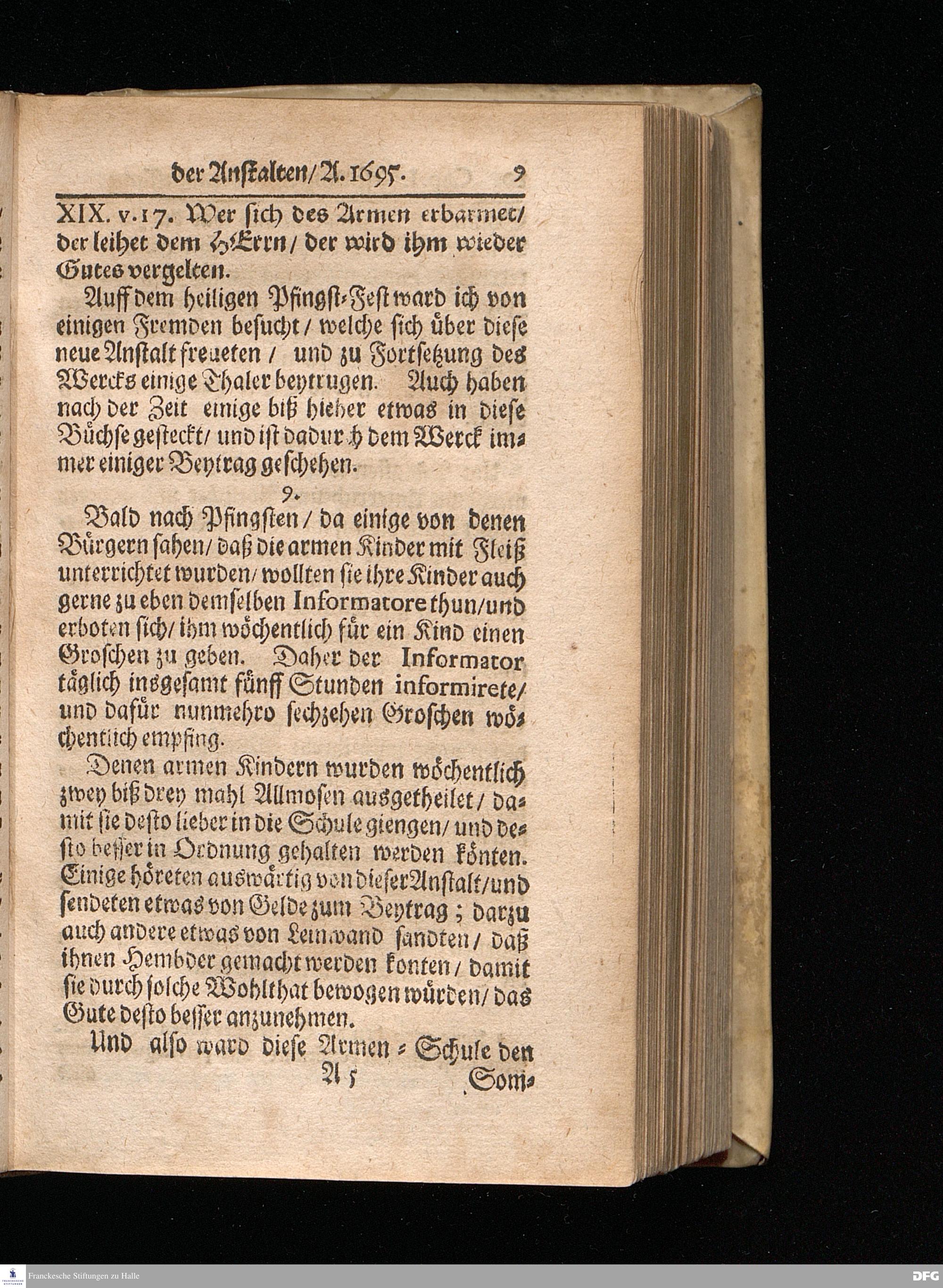 Segens=volle Fußstapfen des noch lebenden und waltenden liebreichen und getreuen GOttes / Zur Beschämung des Unglaubens und Stärckung des Glaubens entdecket durch eine wahrhafte und umständliche Nachricht von dem Wäysen=Hause und übrigen Anstalten zu Glaucha vor Halle: Welche im Jahr 1701. zum Druck befördert; ietzo aber zum dritten mal ediret / und bis auf gegenwärtiges Jahr fortgesetzet von August Herm.Francken / S.Theol.Prof.und Past. Halle / in Verlegung des Wäysen=hauses / MDCCIX.