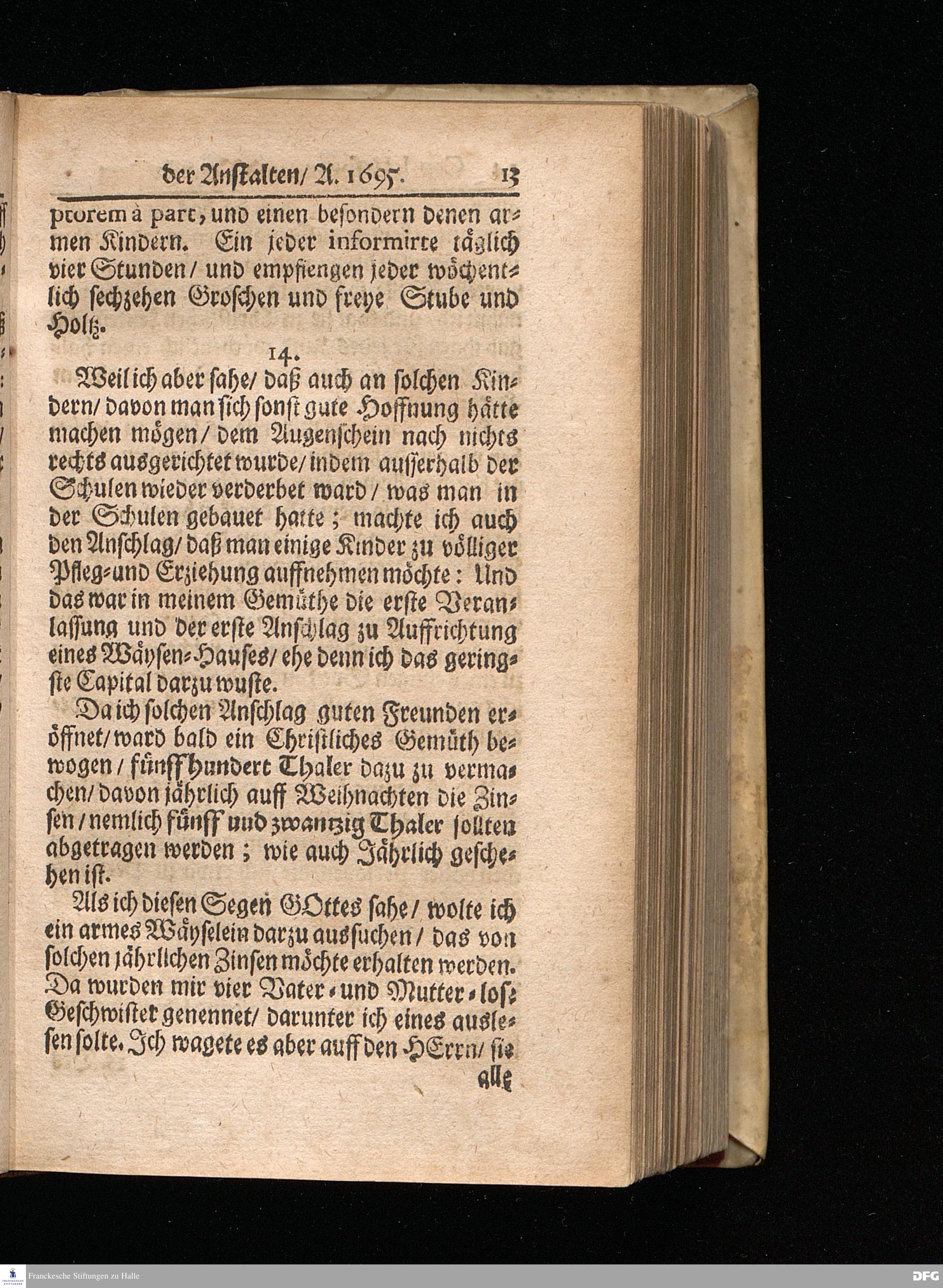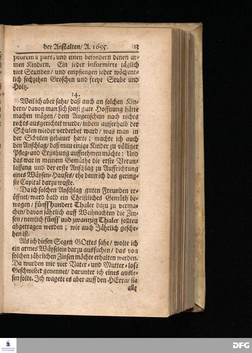 Segens=volle Fußstapfen des noch lebenden und waltenden liebreichen und getreuen GOttes / Zur Beschämung des Unglaubens und Stärckung des Glaubens entdecket durch eine wahrhafte und umständliche Nachricht von dem Wäysen=Hause und übrigen Anstalten zu Glaucha vor Halle: Welche im Jahr 1701. zum Druck befördert; ietzo aber zum dritten mal ediret / und bis auf gegenwärtiges Jahr fortgesetzet von August Herm.Francken / S.Theol.Prof.und Past. Halle / in Verlegung des Wäysen=hauses / MDCCIX.