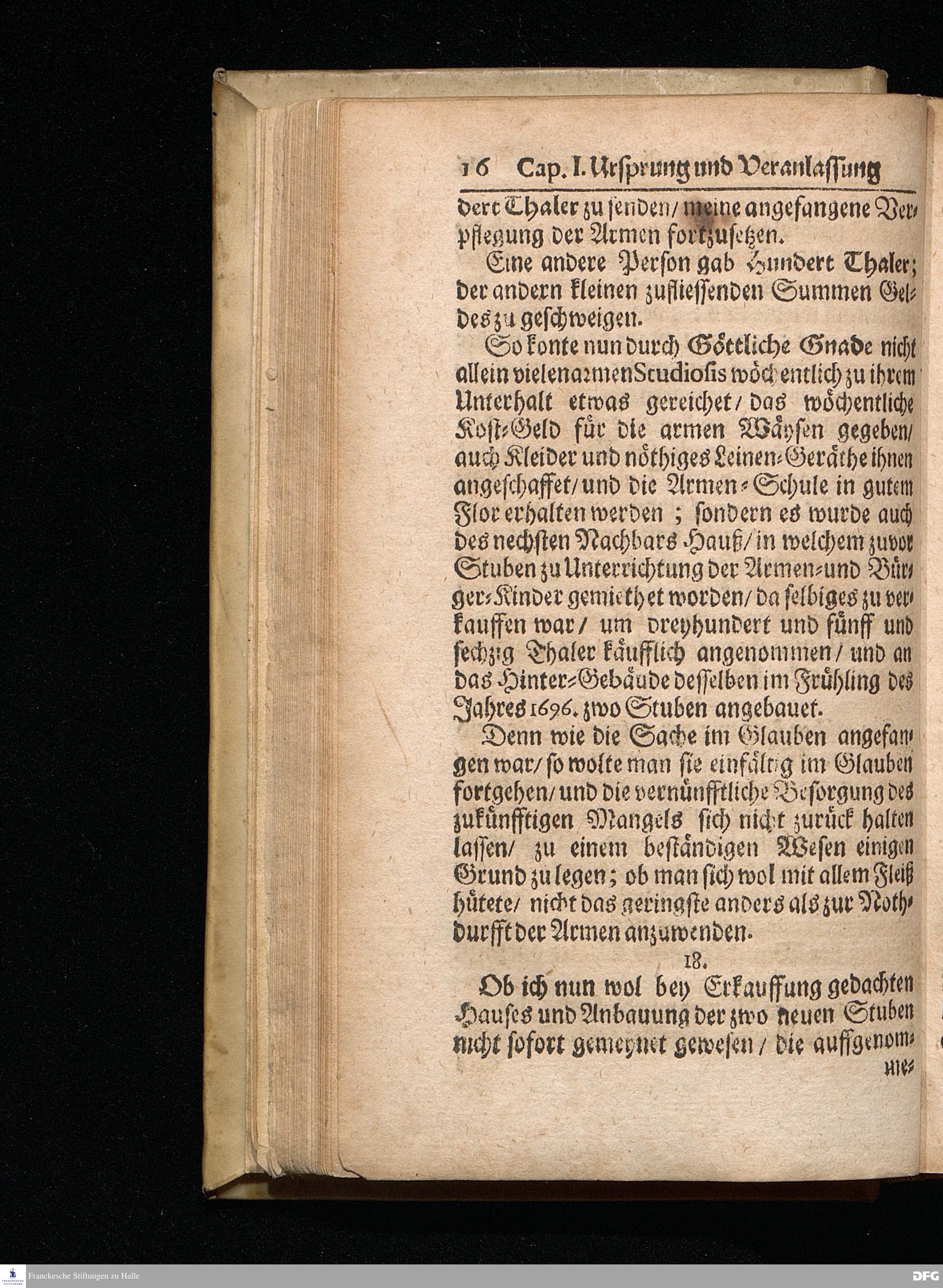 Segens=volle Fußstapfen des noch lebenden und waltenden liebreichen und getreuen GOttes / Zur Beschämung des Unglaubens und Stärckung des Glaubens entdecket durch eine wahrhafte und umständliche Nachricht von dem Wäysen=Hause und übrigen Anstalten zu Glaucha vor Halle: Welche im Jahr 1701. zum Druck befördert; ietzo aber zum dritten mal ediret / und bis auf gegenwärtiges Jahr fortgesetzet von August Herm.Francken / S.Theol.Prof.und Past. Halle / in Verlegung des Wäysen=hauses / MDCCIX.