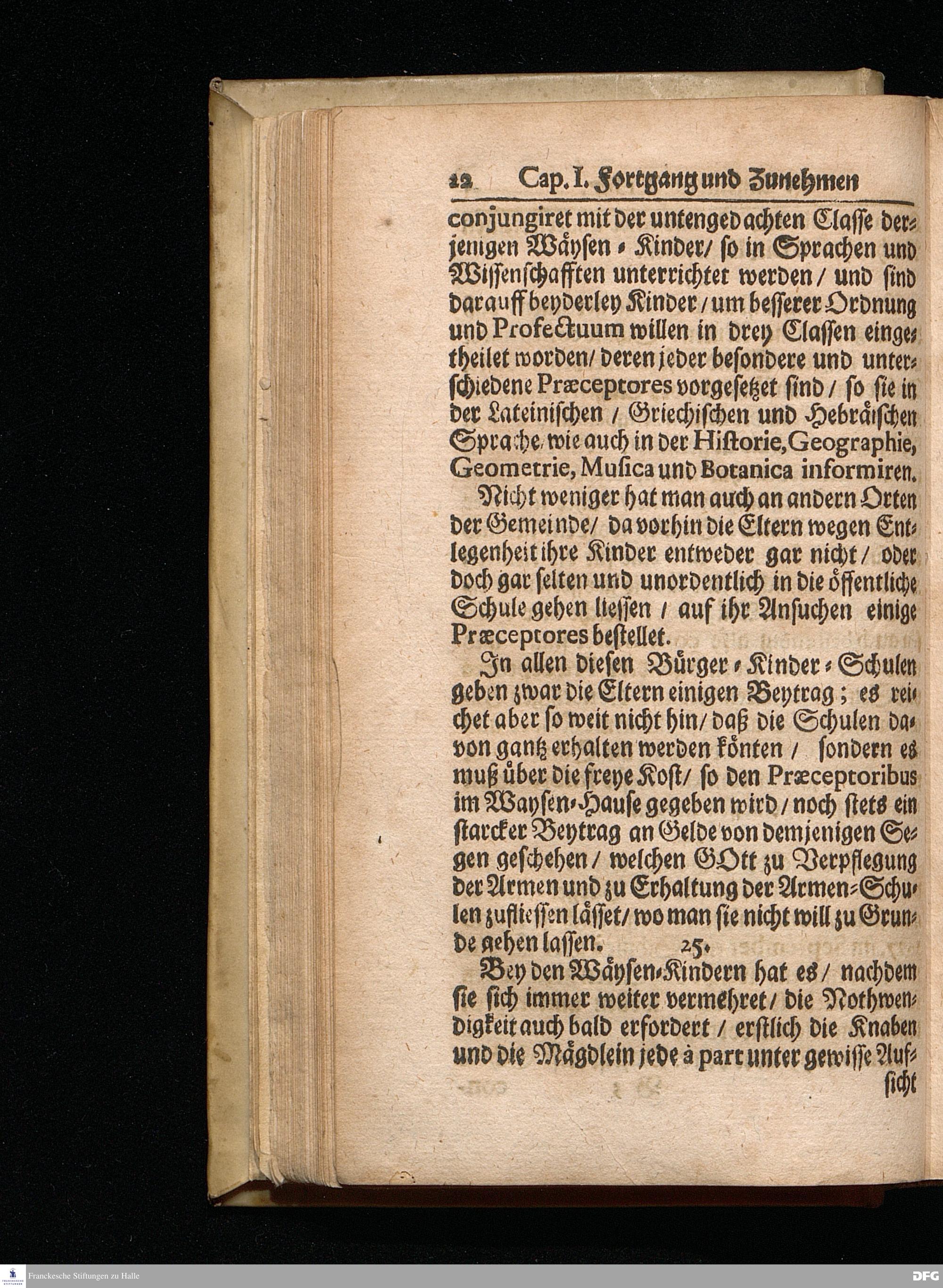 Segens=volle Fußstapfen des noch lebenden und waltenden liebreichen und getreuen GOttes / Zur Beschämung des Unglaubens und Stärckung des Glaubens entdecket durch eine wahrhafte und umständliche Nachricht von dem Wäysen=Hause und übrigen Anstalten zu Glaucha vor Halle: Welche im Jahr 1701. zum Druck befördert; ietzo aber zum dritten mal ediret / und bis auf gegenwärtiges Jahr fortgesetzet von August Herm.Francken / S.Theol.Prof.und Past. Halle / in Verlegung des Wäysen=hauses / MDCCIX.