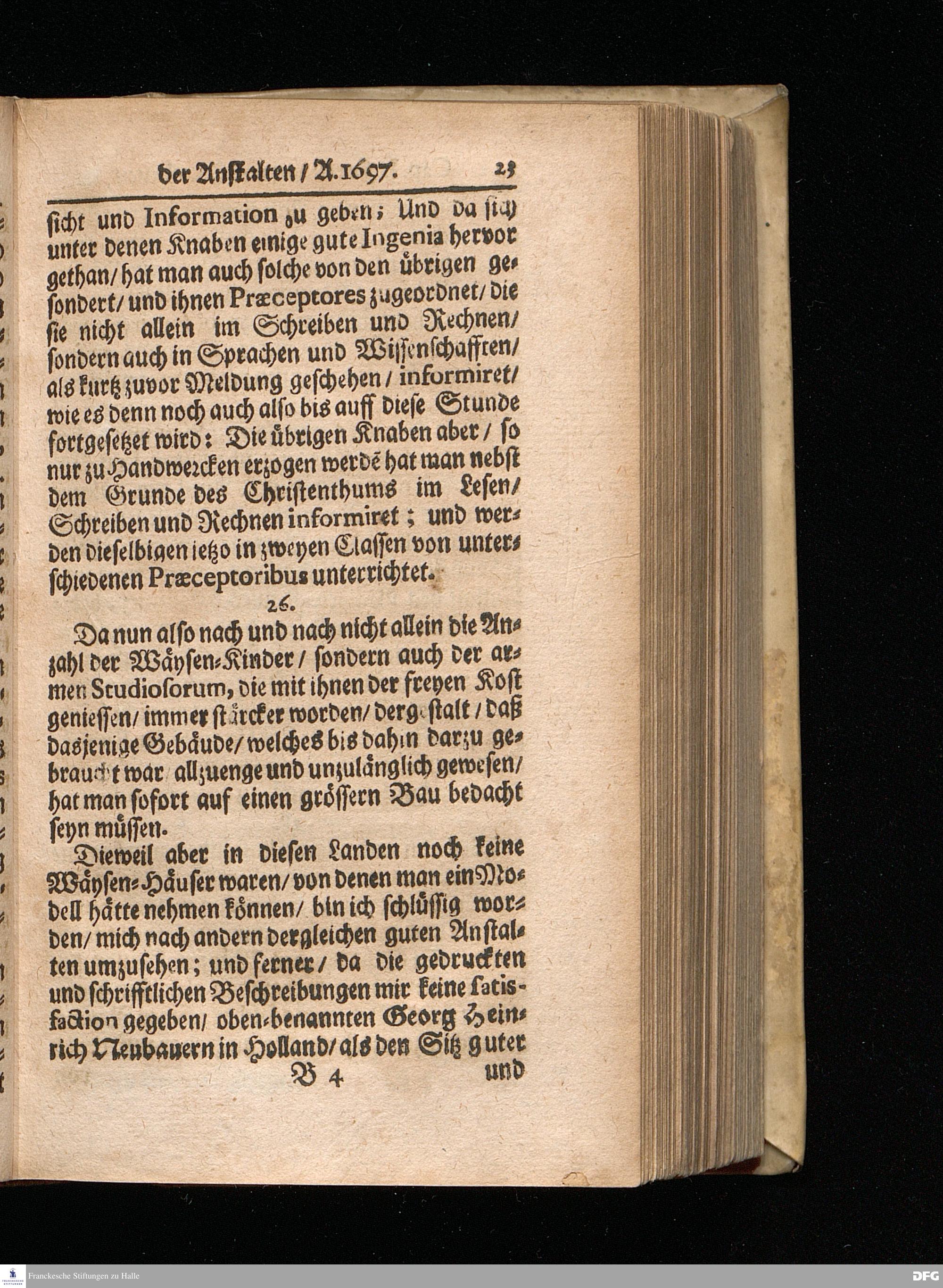 Segens=volle Fußstapfen des noch lebenden und waltenden liebreichen und getreuen GOttes / Zur Beschämung des Unglaubens und Stärckung des Glaubens entdecket durch eine wahrhafte und umständliche Nachricht von dem Wäysen=Hause und übrigen Anstalten zu Glaucha vor Halle: Welche im Jahr 1701. zum Druck befördert; ietzo aber zum dritten mal ediret / und bis auf gegenwärtiges Jahr fortgesetzet von August Herm.Francken / S.Theol.Prof.und Past. Halle / in Verlegung des Wäysen=hauses / MDCCIX.