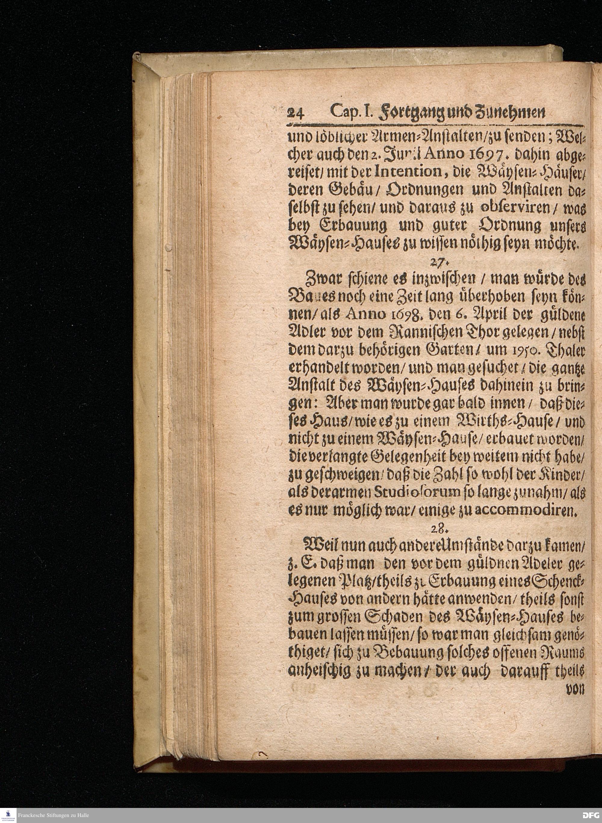 Segens=volle Fußstapfen des noch lebenden und waltenden liebreichen und getreuen GOttes / Zur Beschämung des Unglaubens und Stärckung des Glaubens entdecket durch eine wahrhafte und umständliche Nachricht von dem Wäysen=Hause und übrigen Anstalten zu Glaucha vor Halle: Welche im Jahr 1701. zum Druck befördert; ietzo aber zum dritten mal ediret / und bis auf gegenwärtiges Jahr fortgesetzet von August Herm.Francken / S.Theol.Prof.und Past. Halle / in Verlegung des Wäysen=hauses / MDCCIX.