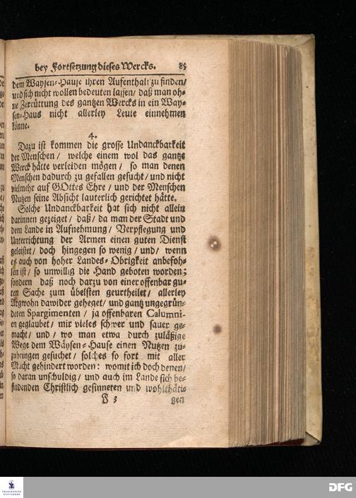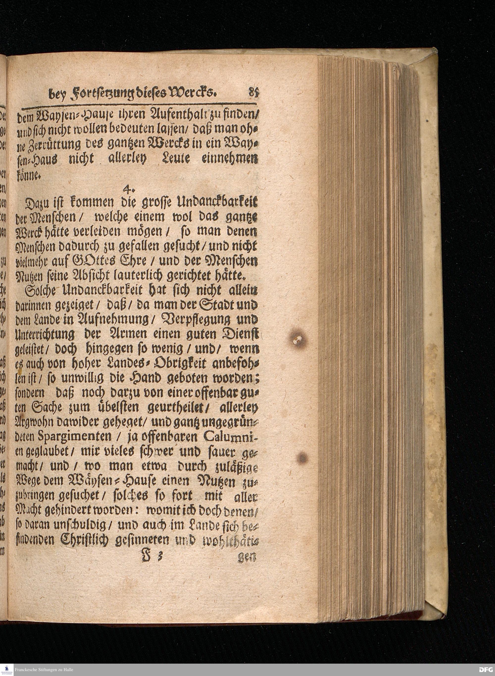 Segens=volle Fußstapfen des noch lebenden und waltenden liebreichen und getreuen GOttes / Zur Beschämung des Unglaubens und Stärckung des Glaubens entdecket durch eine wahrhafte und umständliche Nachricht von dem Wäysen=Hause und übrigen Anstalten zu Glaucha vor Halle: Welche im Jahr 1701. zum Druck befördert; ietzo aber zum dritten mal ediret / und bis auf gegenwärtiges Jahr fortgesetzet von August Herm.Francken / S.Theol.Prof.und Past. Halle / in Verlegung des Wäysen=hauses / MDCCIX.