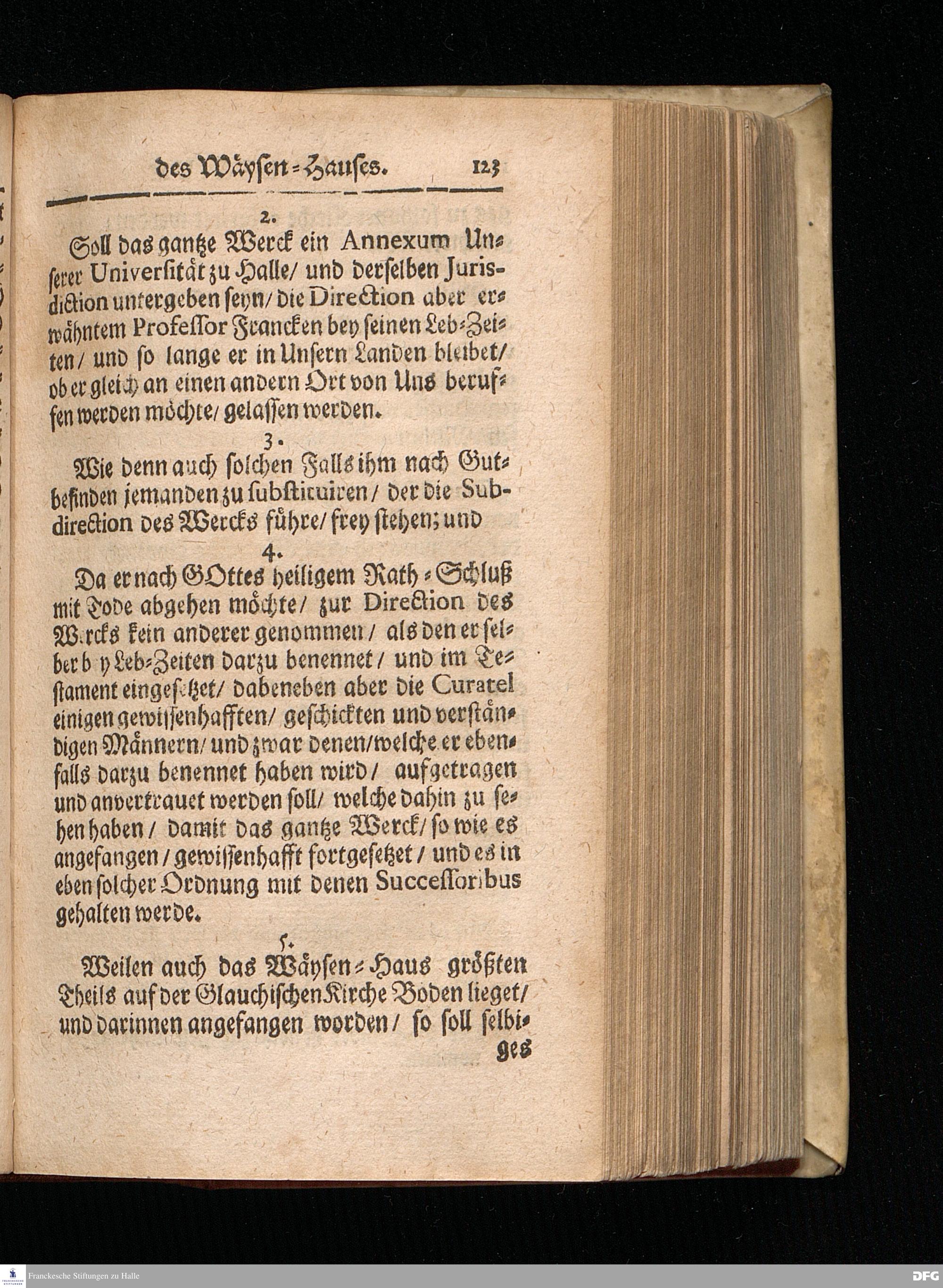 Segens=volle Fußstapfen des noch lebenden und waltenden liebreichen und getreuen GOttes / Zur Beschämung des Unglaubens und Stärckung des Glaubens entdecket durch eine wahrhafte und umständliche Nachricht von dem Wäysen=Hause und übrigen Anstalten zu Glaucha vor Halle: Welche im Jahr 1701. zum Druck befördert; ietzo aber zum dritten mal ediret / und bis auf gegenwärtiges Jahr fortgesetzet von August Herm.Francken / S.Theol.Prof.und Past. Halle / in Verlegung des Wäysen=hauses / MDCCIX.