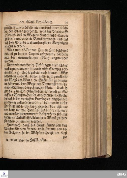 Segens=volle Fußstapfen des noch lebenden und waltenden liebreichen und getreuen GOttes / Zur Beschämung des Unglaubens und Stärckung des Glaubens entdecket durch eine wahrhafte und umständliche Nachricht von dem Wäysen=Hause und übrigen Anstalten zu Glaucha vor Halle: Welche im Jahr 1701. zum Druck befördert; ietzo aber zum dritten mal ediret / und bis auf gegenwärtiges Jahr fortgesetzet von August Herm.Francken / S.Theol.Prof.und Past. Halle / in Verlegung des Wäysen=hauses / MDCCIX.