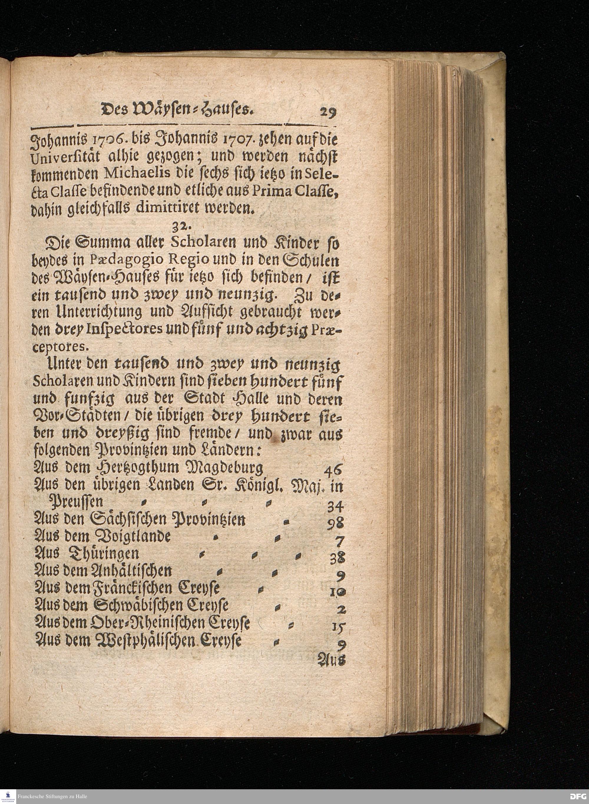 Segens=volle Fußstapfen des noch lebenden und waltenden liebreichen und getreuen GOttes / Zur Beschämung des Unglaubens und Stärckung des Glaubens entdecket durch eine wahrhafte und umständliche Nachricht von dem Wäysen=Hause und übrigen Anstalten zu Glaucha vor Halle: Welche im Jahr 1701. zum Druck befördert; ietzo aber zum dritten mal ediret / und bis auf gegenwärtiges Jahr fortgesetzet von August Herm.Francken / S.Theol.Prof.und Past. Halle / in Verlegung des Wäysen=hauses / MDCCIX.