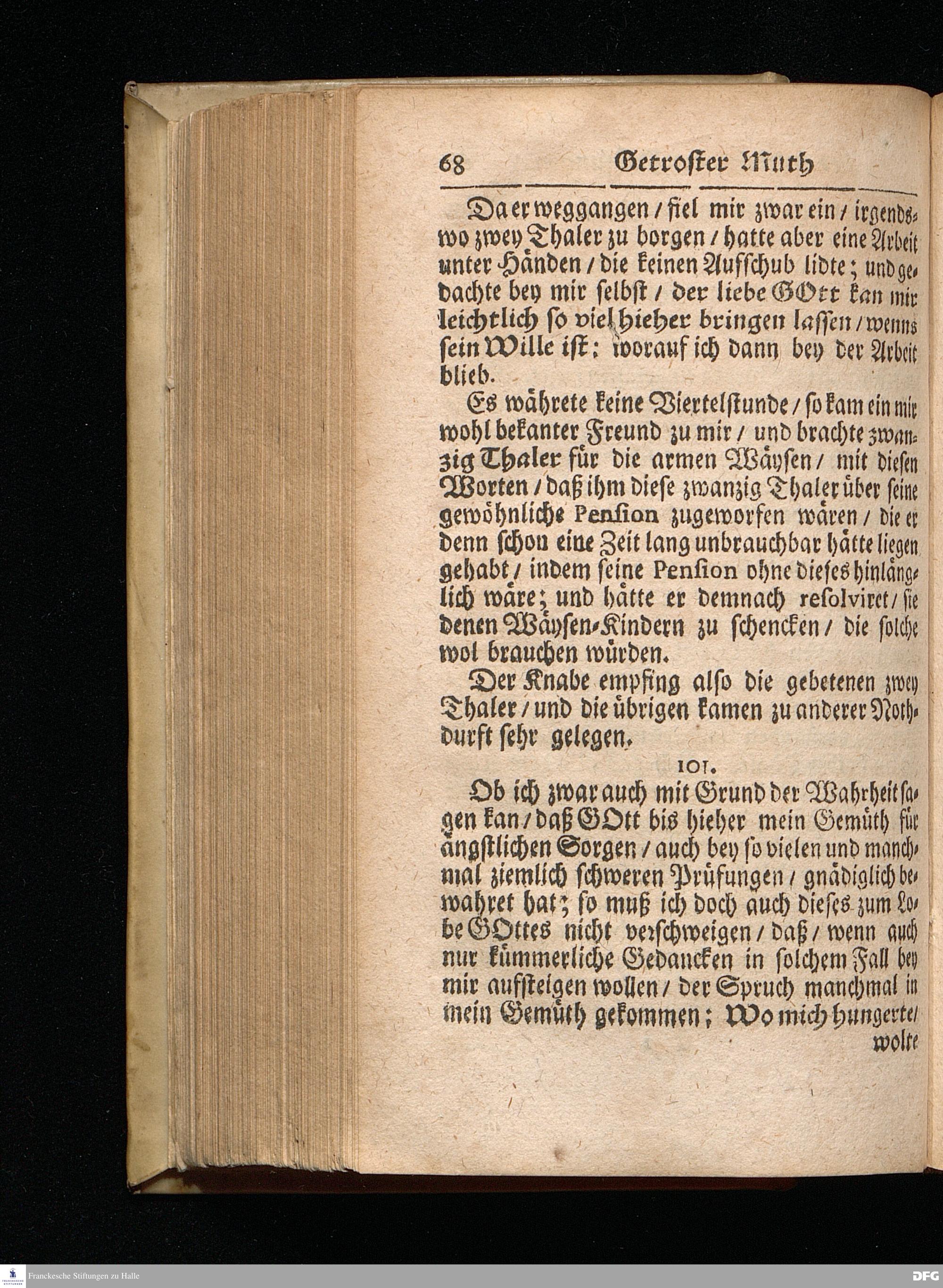 Segens=volle Fußstapfen des noch lebenden und waltenden liebreichen und getreuen GOttes / Zur Beschämung des Unglaubens und Stärckung des Glaubens entdecket durch eine wahrhafte und umständliche Nachricht von dem Wäysen=Hause und übrigen Anstalten zu Glaucha vor Halle: Welche im Jahr 1701. zum Druck befördert; ietzo aber zum dritten mal ediret / und bis auf gegenwärtiges Jahr fortgesetzet von August Herm.Francken / S.Theol.Prof.und Past. Halle / in Verlegung des Wäysen=hauses / MDCCIX.