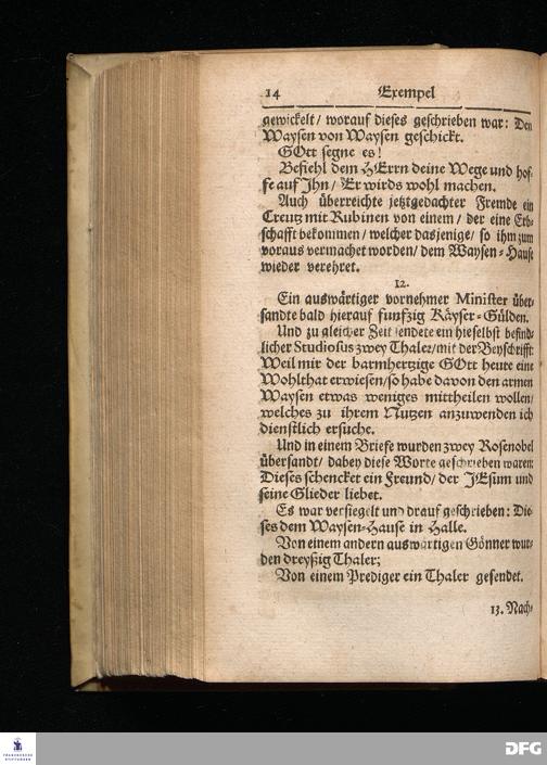 Segens=volle Fußstapfen des noch lebenden und waltenden liebreichen und getreuen GOttes / Zur Beschämung des Unglaubens und Stärckung des Glaubens entdecket durch eine wahrhafte und umständliche Nachricht von dem Wäysen=Hause und übrigen Anstalten zu Glaucha vor Halle: Welche im Jahr 1701. zum Druck befördert; ietzo aber zum dritten mal ediret / und bis auf gegenwärtiges Jahr fortgesetzet von August Herm.Francken / S.Theol.Prof.und Past. Halle / in Verlegung des Wäysen=hauses / MDCCIX.