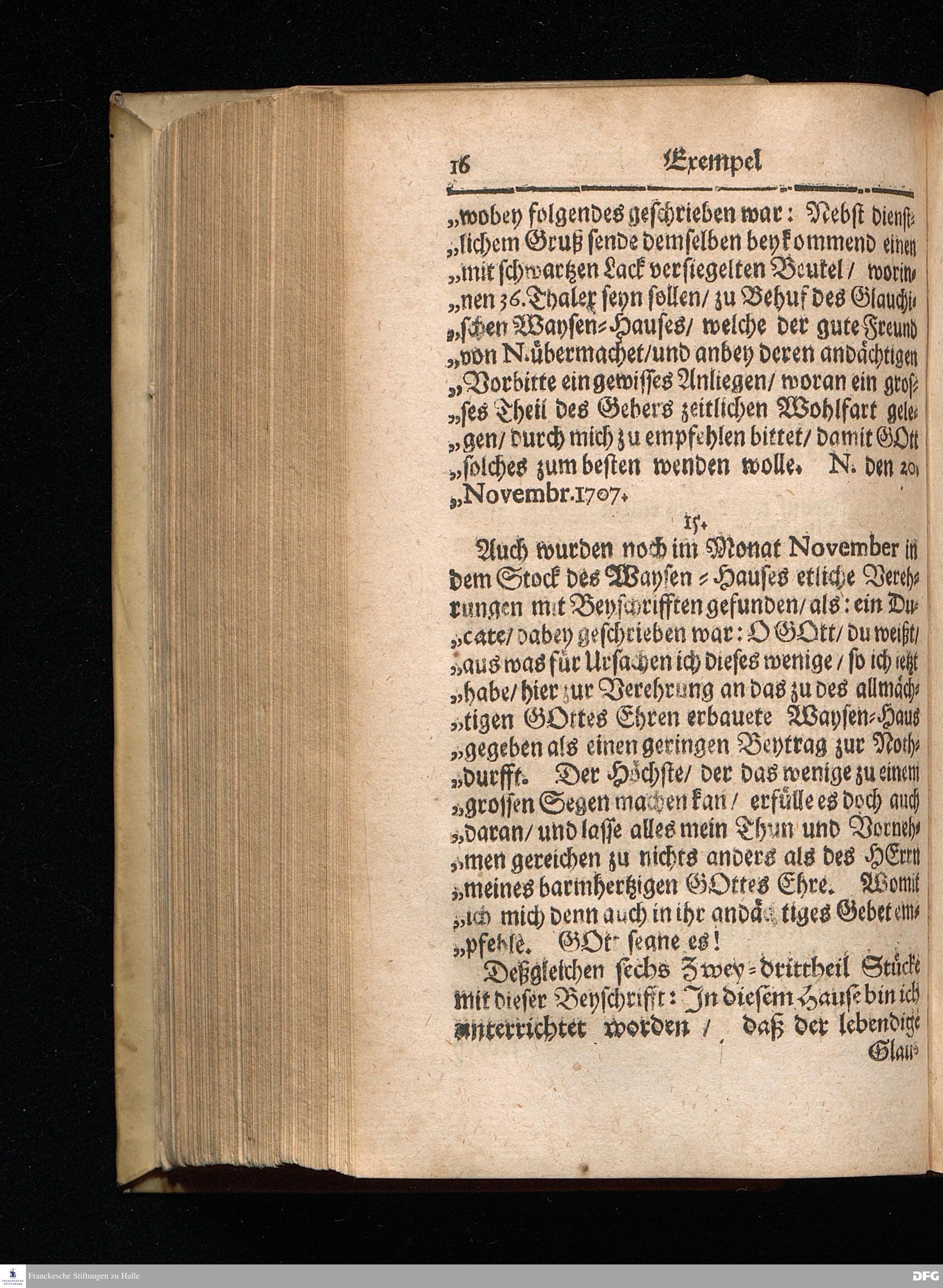 Segens=volle Fußstapfen des noch lebenden und waltenden liebreichen und getreuen GOttes / Zur Beschämung des Unglaubens und Stärckung des Glaubens entdecket durch eine wahrhafte und umständliche Nachricht von dem Wäysen=Hause und übrigen Anstalten zu Glaucha vor Halle: Welche im Jahr 1701. zum Druck befördert; ietzo aber zum dritten mal ediret / und bis auf gegenwärtiges Jahr fortgesetzet von August Herm.Francken / S.Theol.Prof.und Past. Halle / in Verlegung des Wäysen=hauses / MDCCIX.