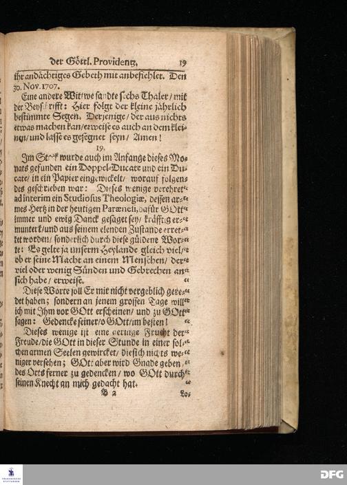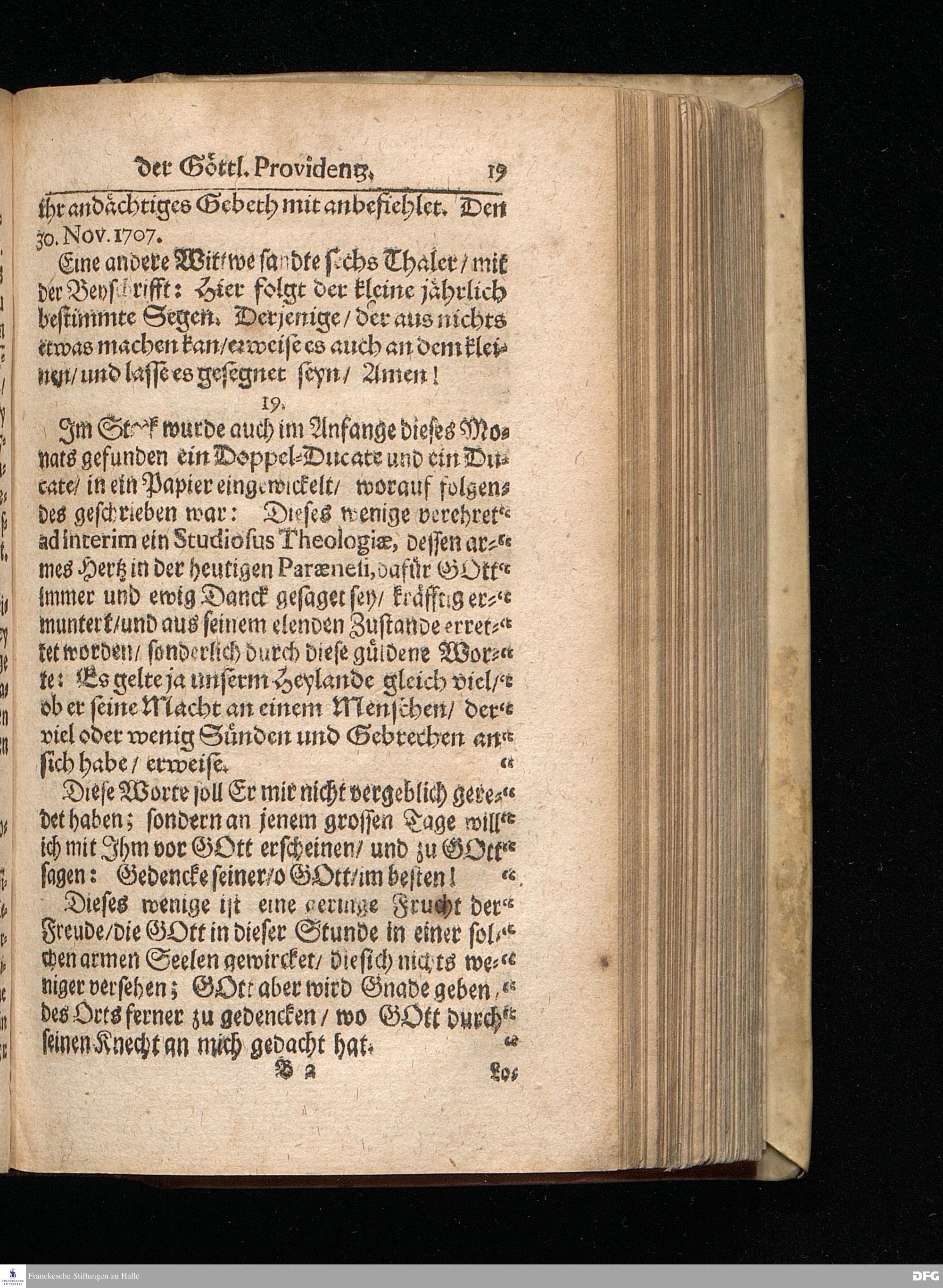 Segens=volle Fußstapfen des noch lebenden und waltenden liebreichen und getreuen GOttes / Zur Beschämung des Unglaubens und Stärckung des Glaubens entdecket durch eine wahrhafte und umständliche Nachricht von dem Wäysen=Hause und übrigen Anstalten zu Glaucha vor Halle: Welche im Jahr 1701. zum Druck befördert; ietzo aber zum dritten mal ediret / und bis auf gegenwärtiges Jahr fortgesetzet von August Herm.Francken / S.Theol.Prof.und Past. Halle / in Verlegung des Wäysen=hauses / MDCCIX.