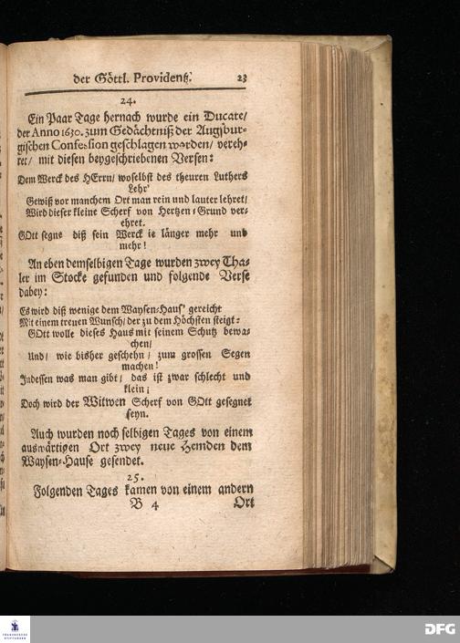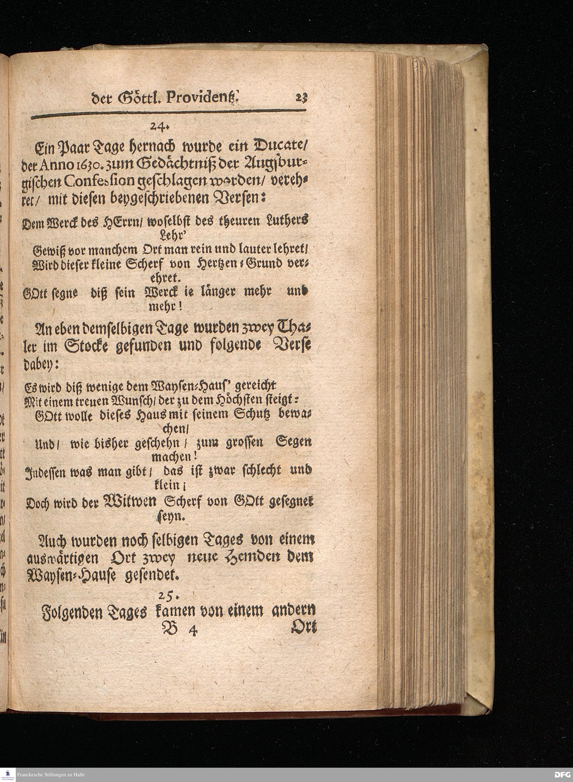 Segens=volle Fußstapfen des noch lebenden und waltenden liebreichen und getreuen GOttes / Zur Beschämung des Unglaubens und Stärckung des Glaubens entdecket durch eine wahrhafte und umständliche Nachricht von dem Wäysen=Hause und übrigen Anstalten zu Glaucha vor Halle: Welche im Jahr 1701. zum Druck befördert; ietzo aber zum dritten mal ediret / und bis auf gegenwärtiges Jahr fortgesetzet von August Herm.Francken / S.Theol.Prof.und Past. Halle / in Verlegung des Wäysen=hauses / MDCCIX.