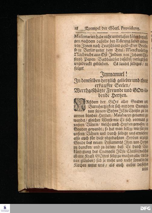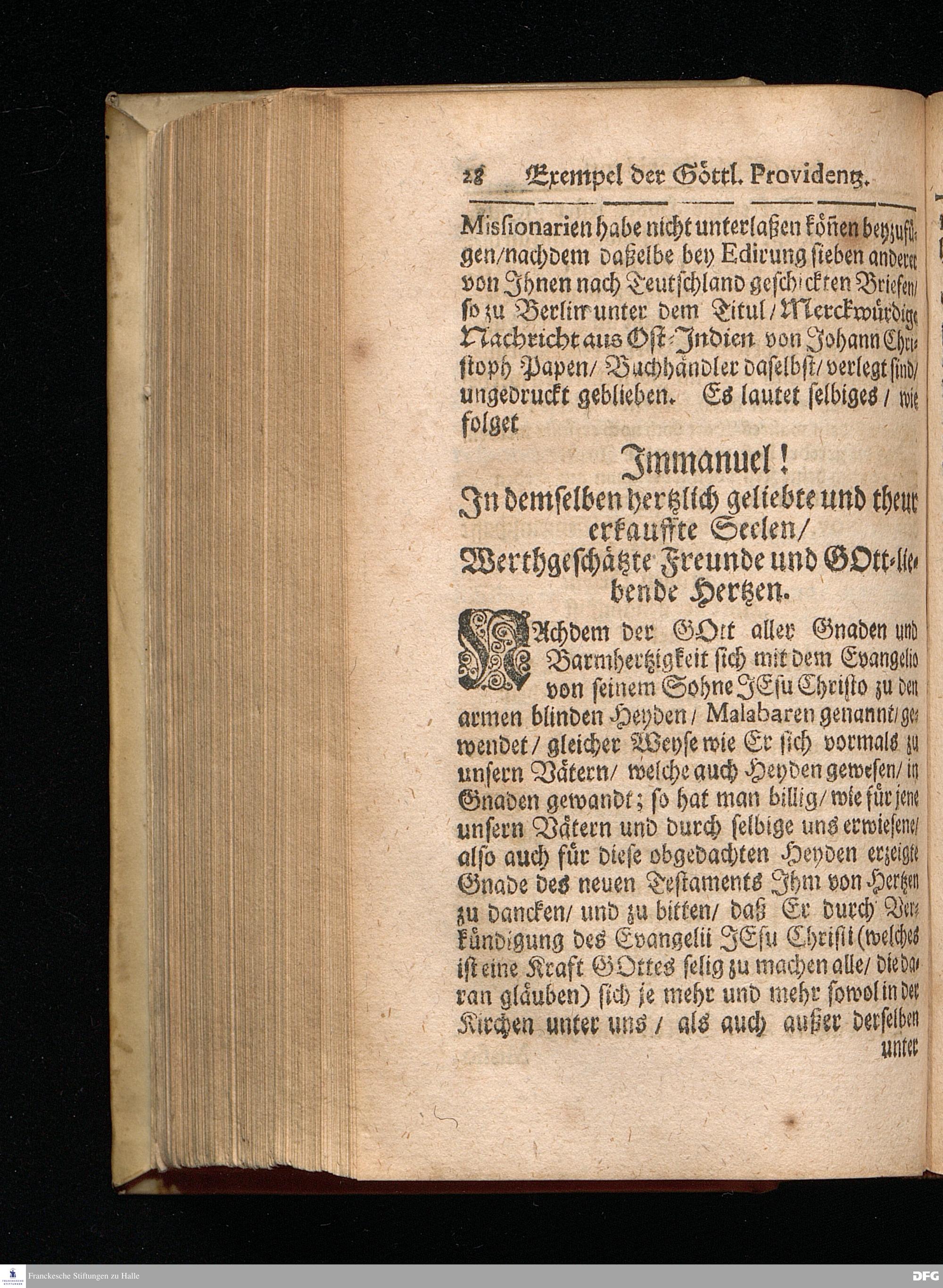 Segens=volle Fußstapfen des noch lebenden und waltenden liebreichen und getreuen GOttes / Zur Beschämung des Unglaubens und Stärckung des Glaubens entdecket durch eine wahrhafte und umständliche Nachricht von dem Wäysen=Hause und übrigen Anstalten zu Glaucha vor Halle: Welche im Jahr 1701. zum Druck befördert; ietzo aber zum dritten mal ediret / und bis auf gegenwärtiges Jahr fortgesetzet von August Herm.Francken / S.Theol.Prof.und Past. Halle / in Verlegung des Wäysen=hauses / MDCCIX.