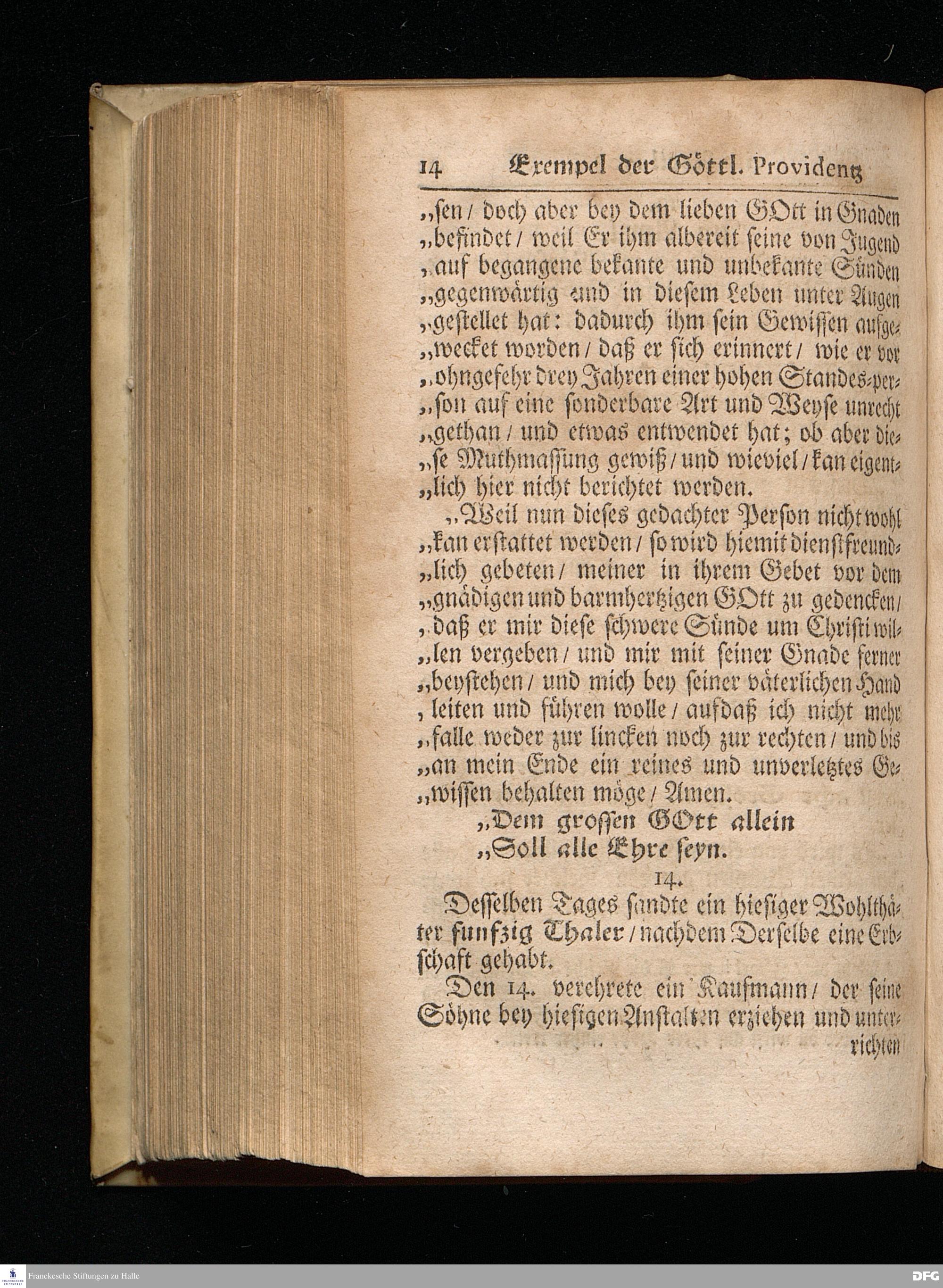 Segens=volle Fußstapfen des noch lebenden und waltenden liebreichen und getreuen GOttes / Zur Beschämung des Unglaubens und Stärckung des Glaubens entdecket durch eine wahrhafte und umständliche Nachricht von dem Wäysen=Hause und übrigen Anstalten zu Glaucha vor Halle: Welche im Jahr 1701. zum Druck befördert; ietzo aber zum dritten mal ediret / und bis auf gegenwärtiges Jahr fortgesetzet von August Herm.Francken / S.Theol.Prof.und Past. Halle / in Verlegung des Wäysen=hauses / MDCCIX.