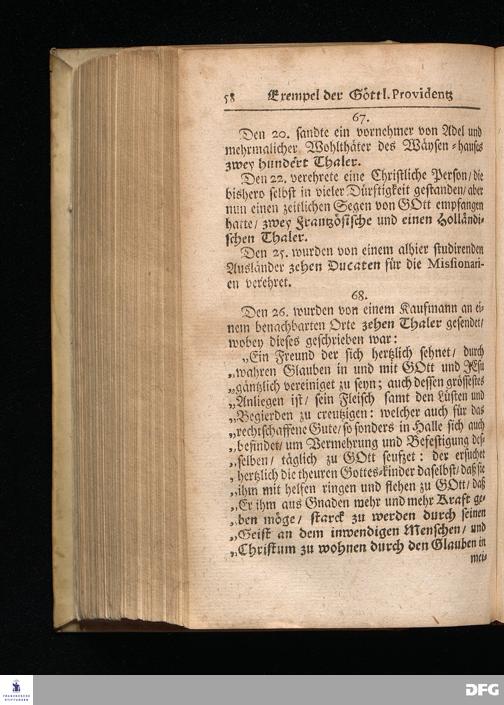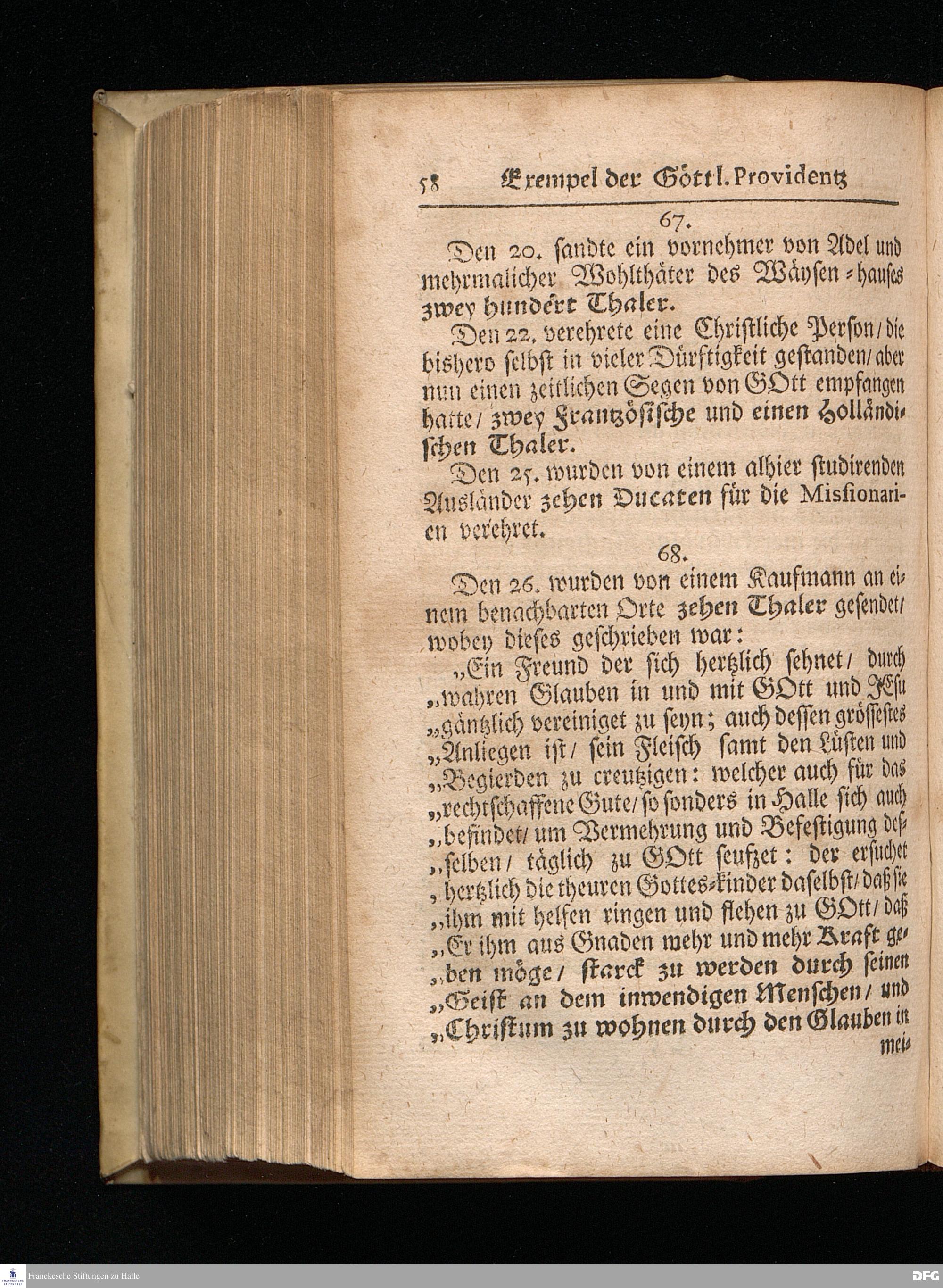 Segens=volle Fußstapfen des noch lebenden und waltenden liebreichen und getreuen GOttes / Zur Beschämung des Unglaubens und Stärckung des Glaubens entdecket durch eine wahrhafte und umständliche Nachricht von dem Wäysen=Hause und übrigen Anstalten zu Glaucha vor Halle: Welche im Jahr 1701. zum Druck befördert; ietzo aber zum dritten mal ediret / und bis auf gegenwärtiges Jahr fortgesetzet von August Herm.Francken / S.Theol.Prof.und Past. Halle / in Verlegung des Wäysen=hauses / MDCCIX.