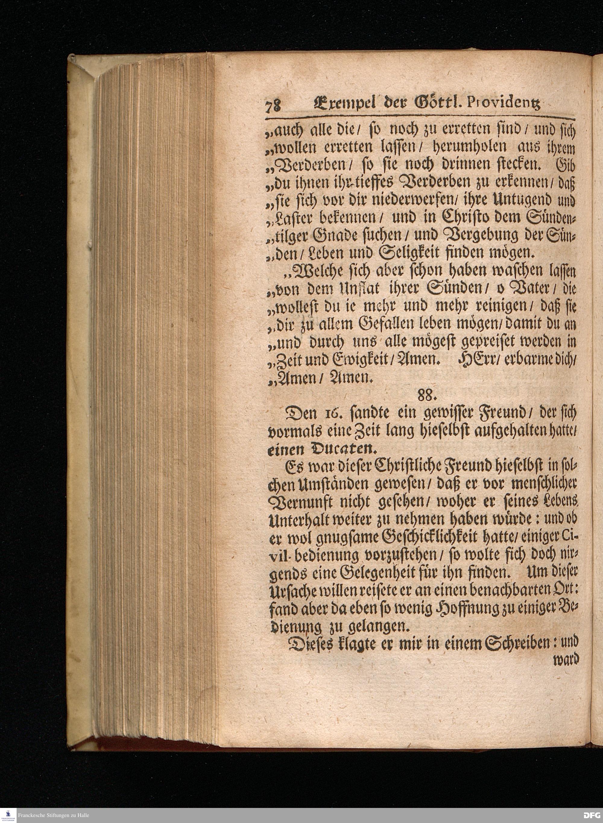 Segens=volle Fußstapfen des noch lebenden und waltenden liebreichen und getreuen GOttes / Zur Beschämung des Unglaubens und Stärckung des Glaubens entdecket durch eine wahrhafte und umständliche Nachricht von dem Wäysen=Hause und übrigen Anstalten zu Glaucha vor Halle: Welche im Jahr 1701. zum Druck befördert; ietzo aber zum dritten mal ediret / und bis auf gegenwärtiges Jahr fortgesetzet von August Herm.Francken / S.Theol.Prof.und Past. Halle / in Verlegung des Wäysen=hauses / MDCCIX.