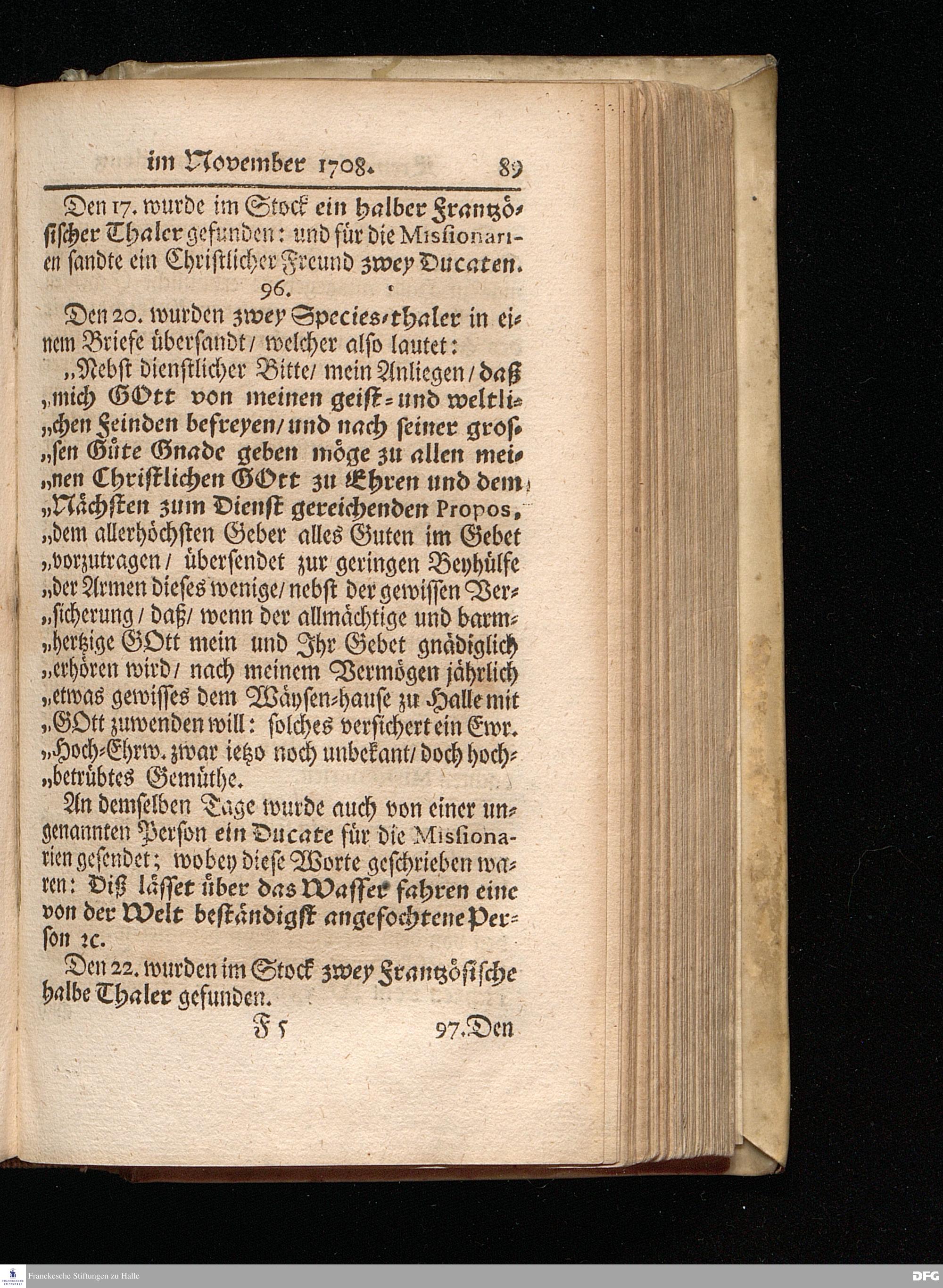 Segens=volle Fußstapfen des noch lebenden und waltenden liebreichen und getreuen GOttes / Zur Beschämung des Unglaubens und Stärckung des Glaubens entdecket durch eine wahrhafte und umständliche Nachricht von dem Wäysen=Hause und übrigen Anstalten zu Glaucha vor Halle: Welche im Jahr 1701. zum Druck befördert; ietzo aber zum dritten mal ediret / und bis auf gegenwärtiges Jahr fortgesetzet von August Herm.Francken / S.Theol.Prof.und Past. Halle / in Verlegung des Wäysen=hauses / MDCCIX.