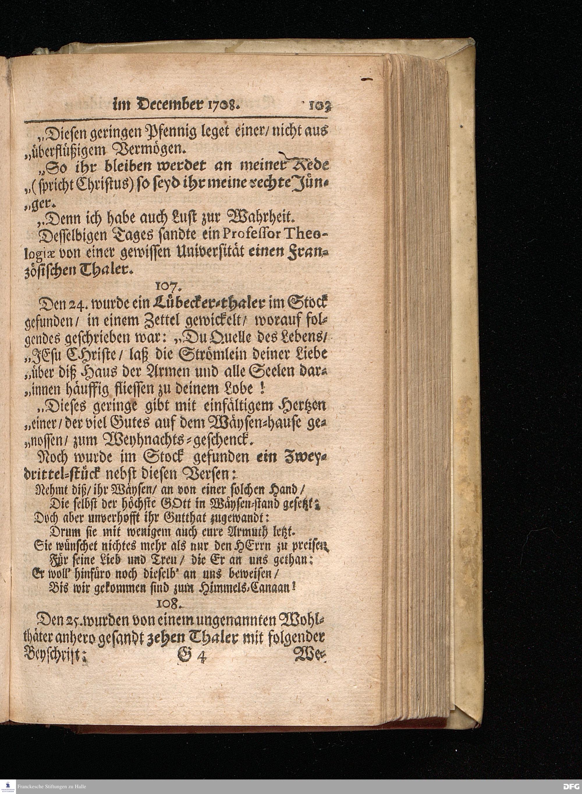 Segens=volle Fußstapfen des noch lebenden und waltenden liebreichen und getreuen GOttes / Zur Beschämung des Unglaubens und Stärckung des Glaubens entdecket durch eine wahrhafte und umständliche Nachricht von dem Wäysen=Hause und übrigen Anstalten zu Glaucha vor Halle: Welche im Jahr 1701. zum Druck befördert; ietzo aber zum dritten mal ediret / und bis auf gegenwärtiges Jahr fortgesetzet von August Herm.Francken / S.Theol.Prof.und Past. Halle / in Verlegung des Wäysen=hauses / MDCCIX.