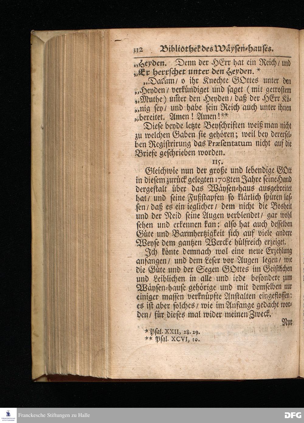 Segens=volle Fußstapfen des noch lebenden und waltenden liebreichen und getreuen GOttes / Zur Beschämung des Unglaubens und Stärckung des Glaubens entdecket durch eine wahrhafte und umständliche Nachricht von dem Wäysen=Hause und übrigen Anstalten zu Glaucha vor Halle: Welche im Jahr 1701. zum Druck befördert; ietzo aber zum dritten mal ediret / und bis auf gegenwärtiges Jahr fortgesetzet von August Herm.Francken / S.Theol.Prof.und Past. Halle / in Verlegung des Wäysen=hauses / MDCCIX.