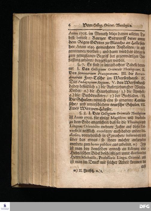 Segens=volle Fußstapfen des noch lebenden und waltenden liebreichen und getreuen GOttes / Zur Beschämung des Unglaubens und Stärckung des Glaubens entdecket durch eine wahrhafte und umständliche Nachricht von dem Wäysen=Hause und übrigen Anstalten zu Glaucha vor Halle: Welche im Jahr 1701. zum Druck befördert; ietzo aber zum dritten mal ediret / und bis auf gegenwärtiges Jahr fortgesetzet von August Herm.Francken / S.Theol.Prof.und Past. Halle / in Verlegung des Wäysen=hauses / MDCCIX.