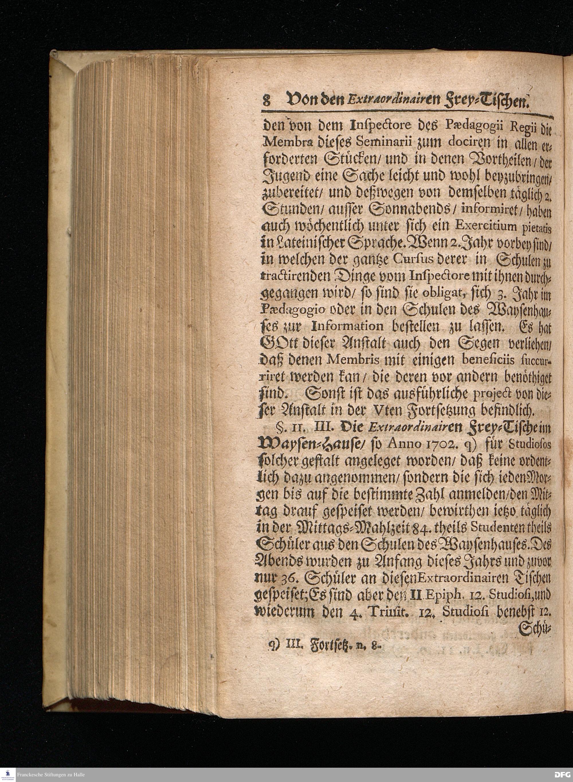 Segens=volle Fußstapfen des noch lebenden und waltenden liebreichen und getreuen GOttes / Zur Beschämung des Unglaubens und Stärckung des Glaubens entdecket durch eine wahrhafte und umständliche Nachricht von dem Wäysen=Hause und übrigen Anstalten zu Glaucha vor Halle: Welche im Jahr 1701. zum Druck befördert; ietzo aber zum dritten mal ediret / und bis auf gegenwärtiges Jahr fortgesetzet von August Herm.Francken / S.Theol.Prof.und Past. Halle / in Verlegung des Wäysen=hauses / MDCCIX.