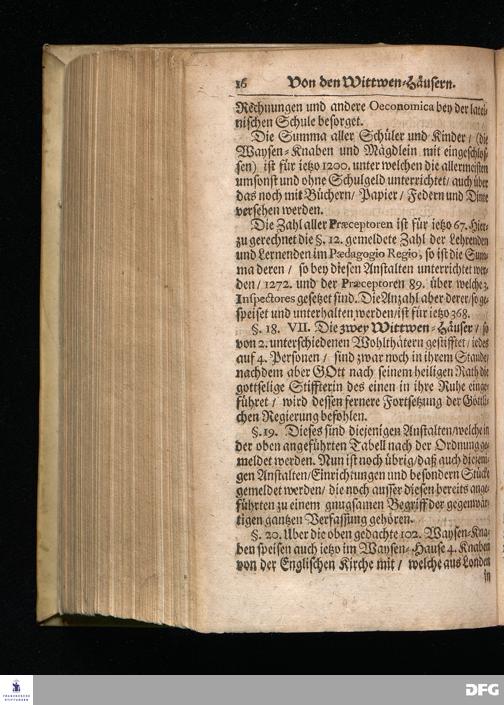 Segens=volle Fußstapfen des noch lebenden und waltenden liebreichen und getreuen GOttes / Zur Beschämung des Unglaubens und Stärckung des Glaubens entdecket durch eine wahrhafte und umständliche Nachricht von dem Wäysen=Hause und übrigen Anstalten zu Glaucha vor Halle: Welche im Jahr 1701. zum Druck befördert; ietzo aber zum dritten mal ediret / und bis auf gegenwärtiges Jahr fortgesetzet von August Herm.Francken / S.Theol.Prof.und Past. Halle / in Verlegung des Wäysen=hauses / MDCCIX.