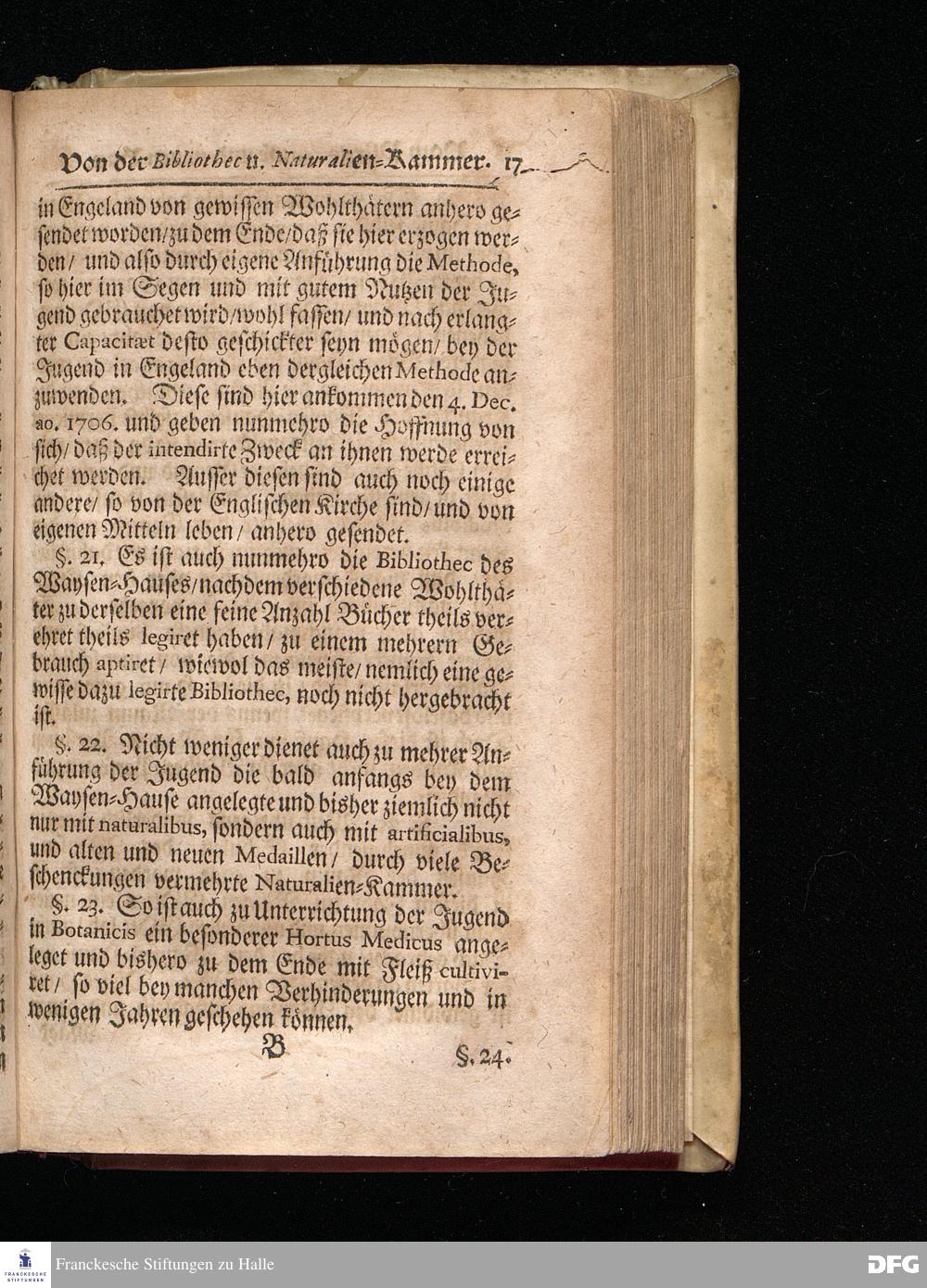 Segens=volle Fußstapfen des noch lebenden und waltenden liebreichen und getreuen GOttes / Zur Beschämung des Unglaubens und Stärckung des Glaubens entdecket durch eine wahrhafte und umständliche Nachricht von dem Wäysen=Hause und übrigen Anstalten zu Glaucha vor Halle: Welche im Jahr 1701. zum Druck befördert; ietzo aber zum dritten mal ediret / und bis auf gegenwärtiges Jahr fortgesetzet von August Herm.Francken / S.Theol.Prof.und Past. Halle / in Verlegung des Wäysen=hauses / MDCCIX.