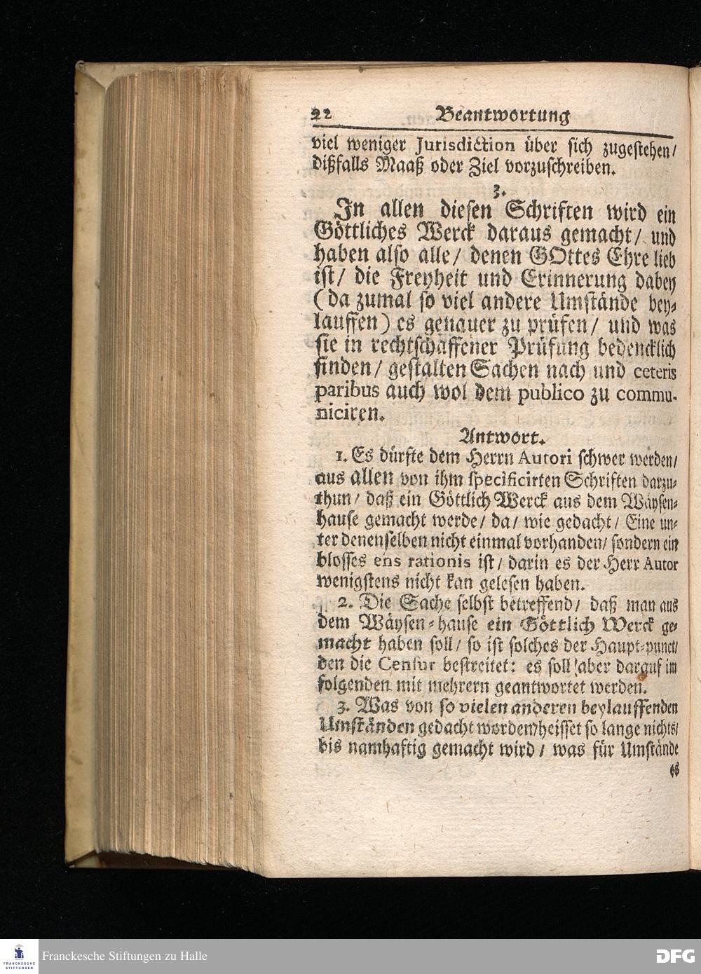 Segens=volle Fußstapfen des noch lebenden und waltenden liebreichen und getreuen GOttes / Zur Beschämung des Unglaubens und Stärckung des Glaubens entdecket durch eine wahrhafte und umständliche Nachricht von dem Wäysen=Hause und übrigen Anstalten zu Glaucha vor Halle: Welche im Jahr 1701. zum Druck befördert; ietzo aber zum dritten mal ediret / und bis auf gegenwärtiges Jahr fortgesetzet von August Herm.Francken / S.Theol.Prof.und Past. Halle / in Verlegung des Wäysen=hauses / MDCCIX.